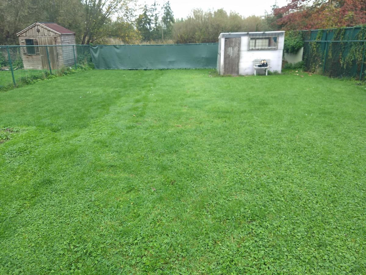 - Tuin met gazon en sierput voorzien van windwijzer