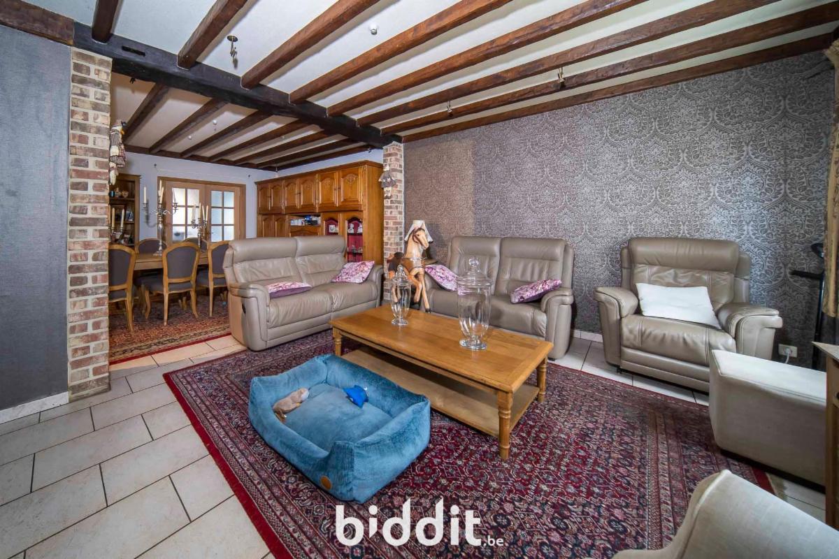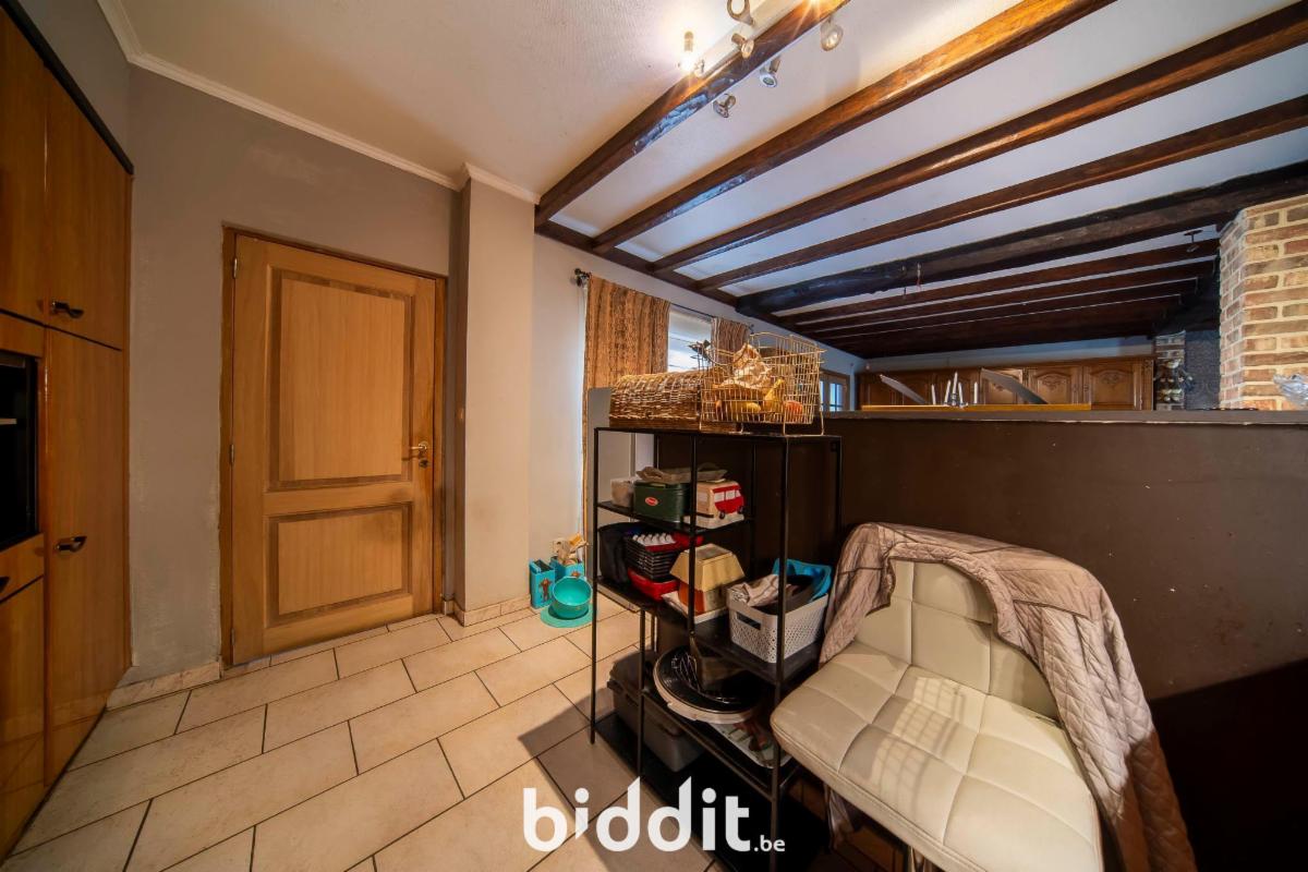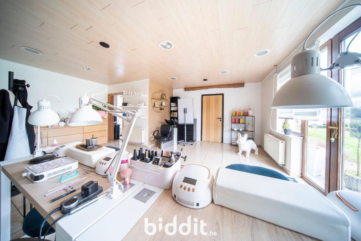 Gelijkvloers: inkomhal, living, eetplaats, keuken, veranda, 2 slaapkamers, badkamer met douche, lavabo, wc, aparte ruimte met veel mogelijkheden (momenteel ingericht als schoonheidssalon); Garage: Ruime tuin;