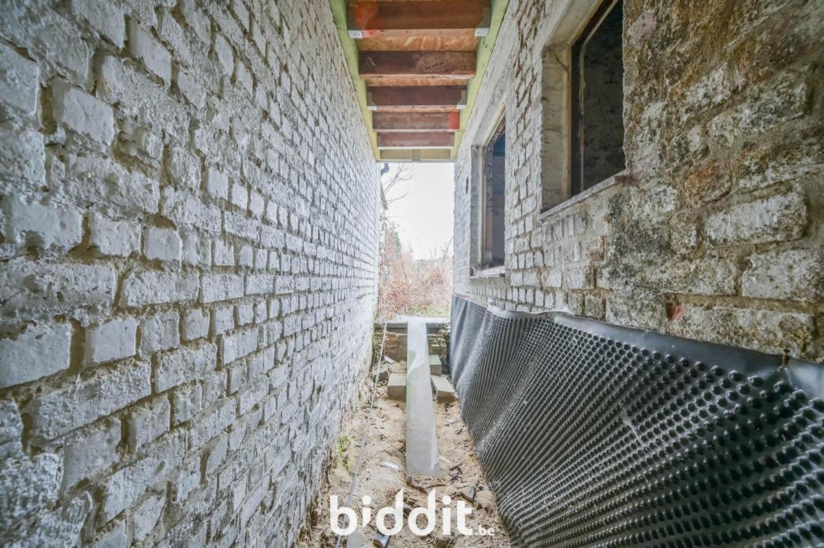 Gelijkvloers: inkomhal, woonkamer, keuken, koer/tuin.