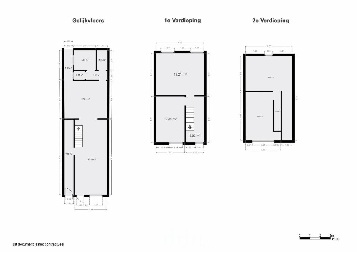1ste verdieping: 1 slaapkamer, 1 badkamer en toilet.