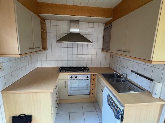 De keuken beschikt over een gasvuur met dampkap, een geïnstalleerde oven en een dubbele spoelbak.