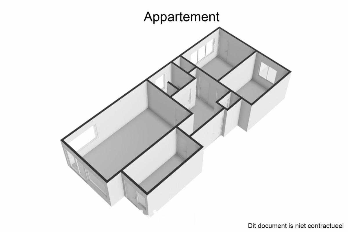 Omvat: living, keuken met terras aan de voorkant, hall, badkamer, wc, kleedkamer en 2 slaapkamers langs achter met terras en muurkast.