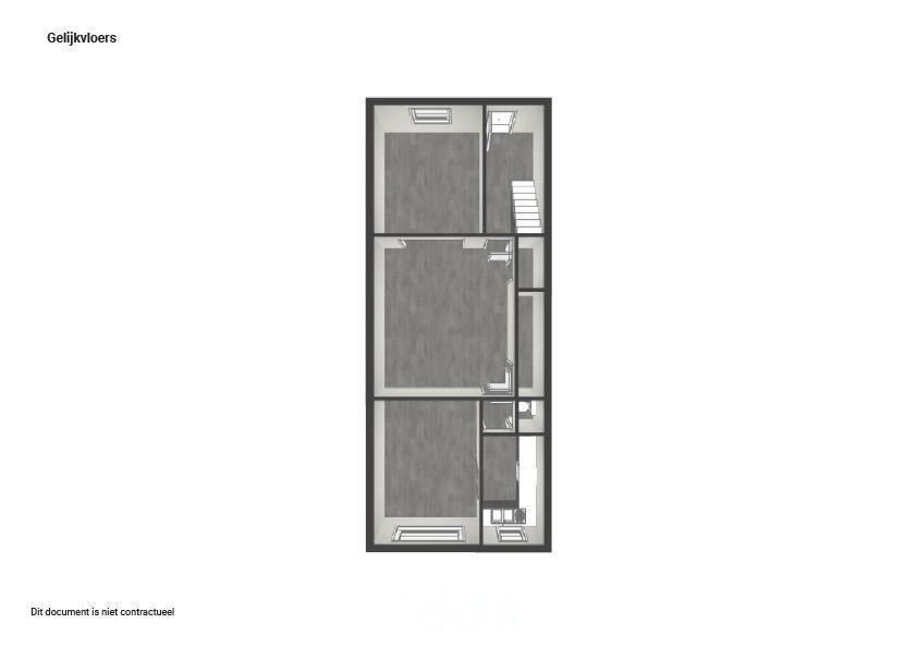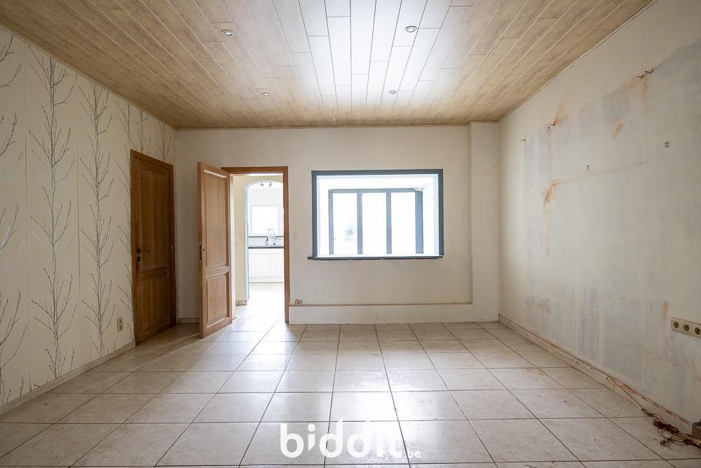 - gelijkvloers: inkomhal met trap, toegang naar de kelder, 2 dooreenlopende woonkamers (waarvan 1 als slaapkamer of bureau kan dienen), bergkast, sas, aparte wc, keuken, eetplaats, tuin met terras en tuinberging;