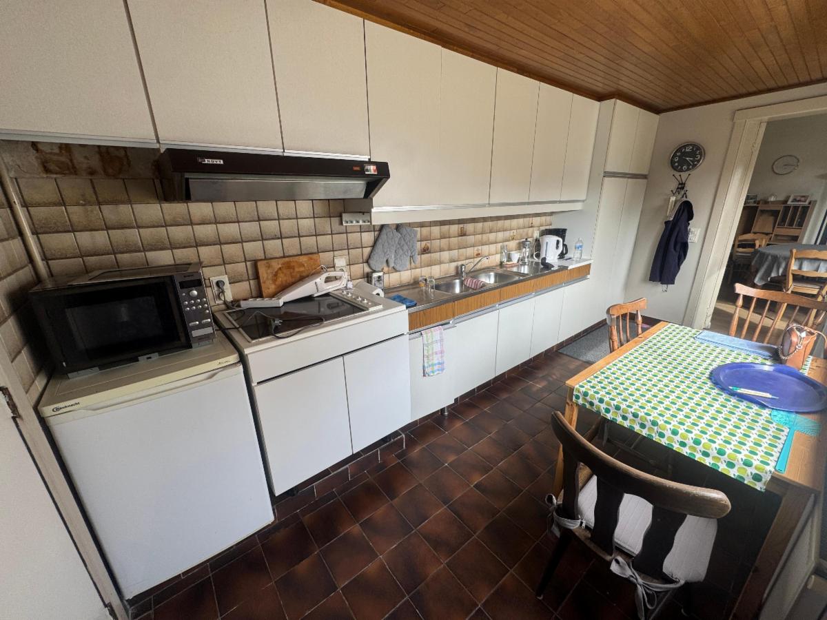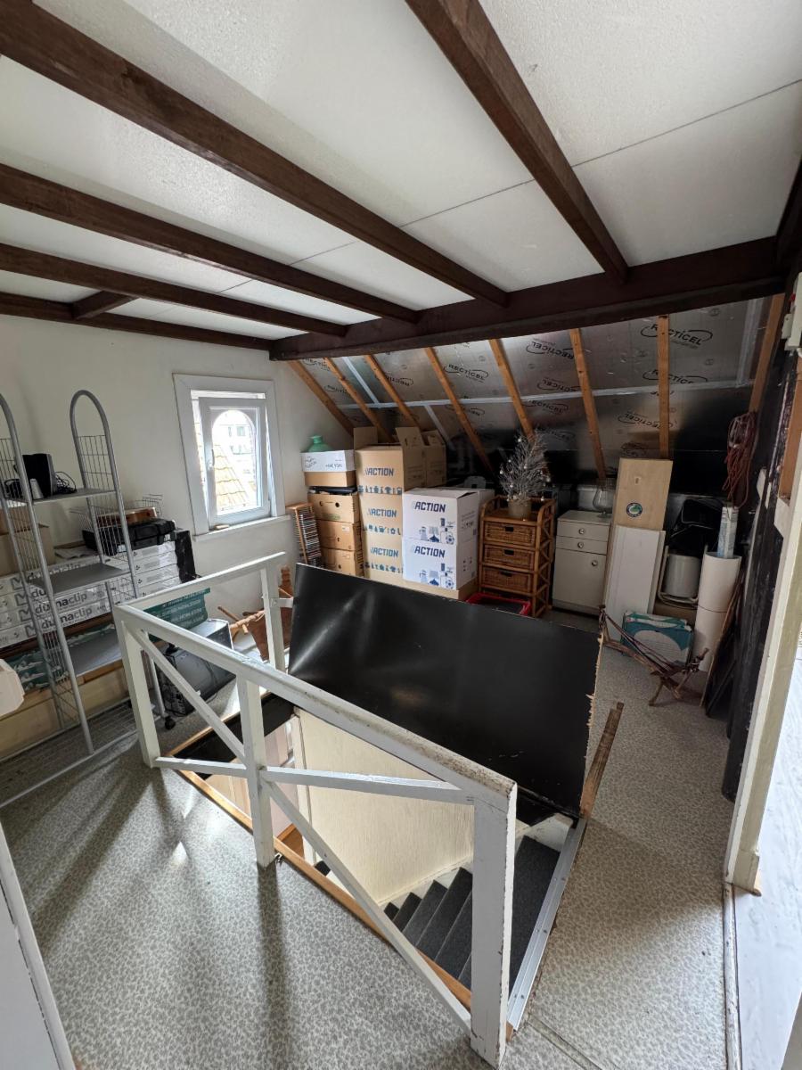 * Gelijkvloers: inkomhal, leefruimte, eetkamer met trap naar mansarde kamer en eerste verdieping alsook trap naar de kelderverdieping, keuken, badkamer met toilet
