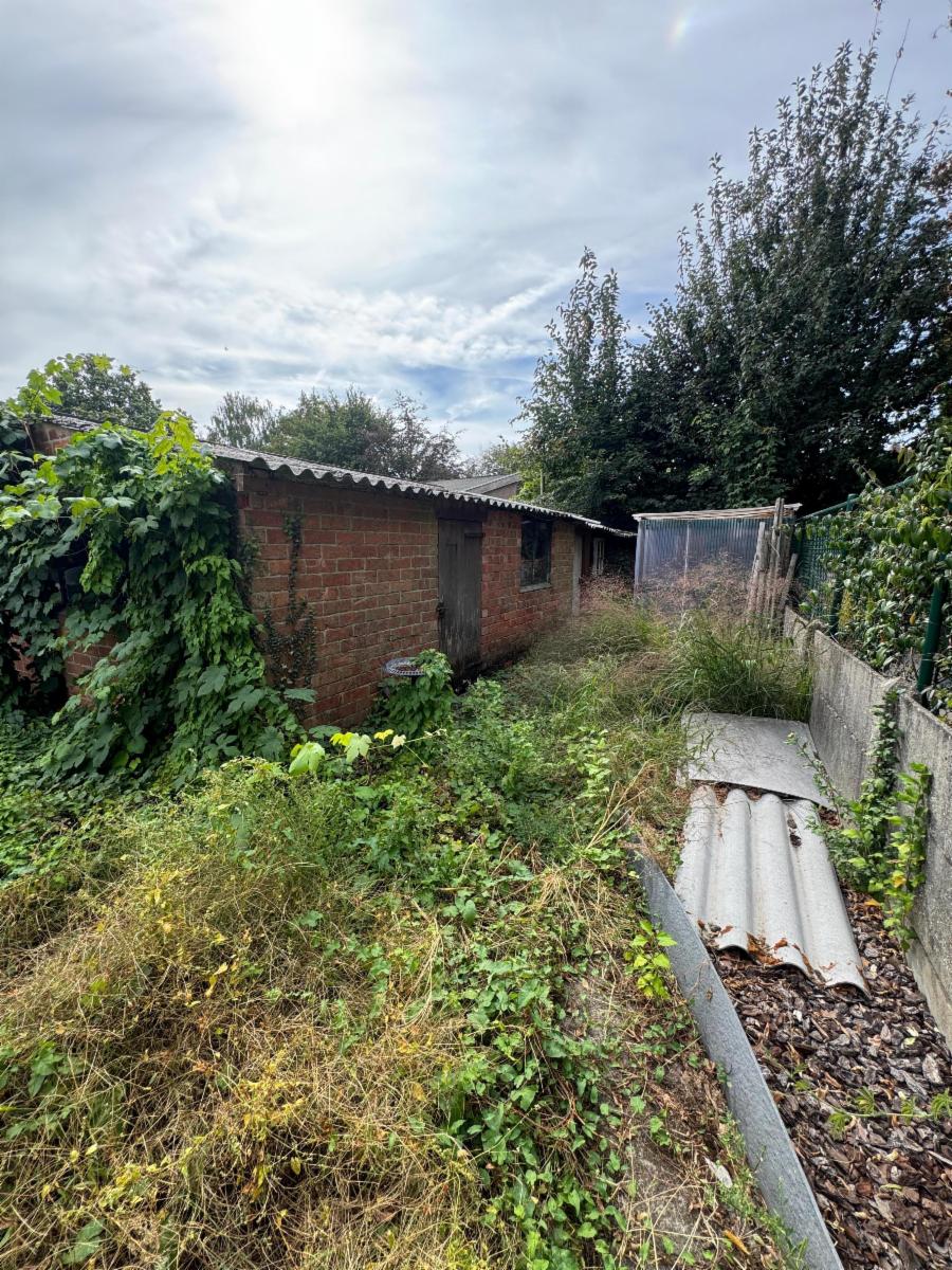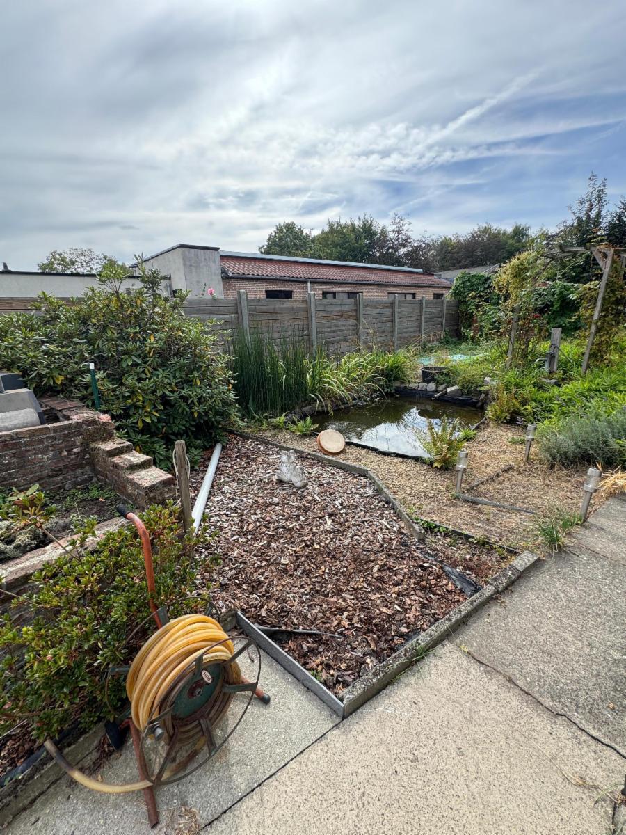 * Tuin met terras, vijver en achteraan tuinhuis. Mogelijkheid om doorgang te creëren met de fiets naar achterliggende straat