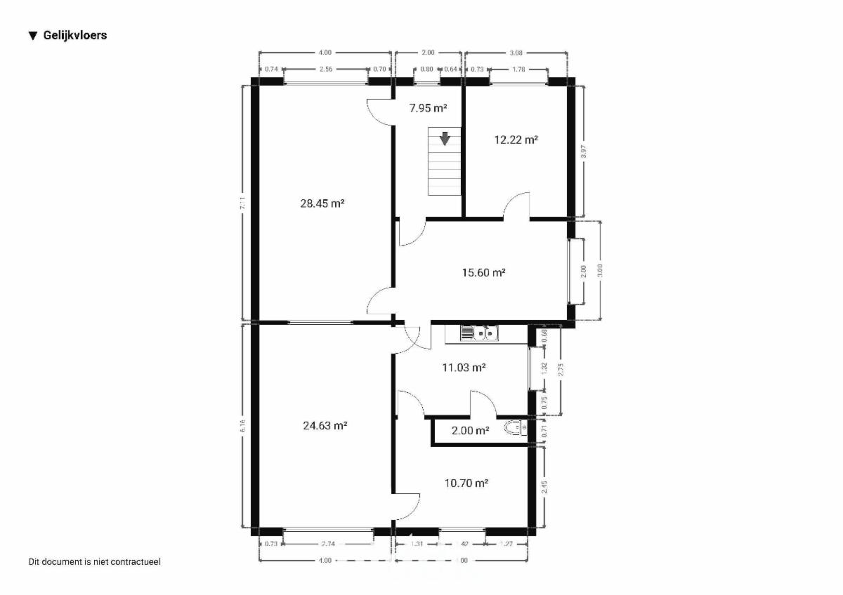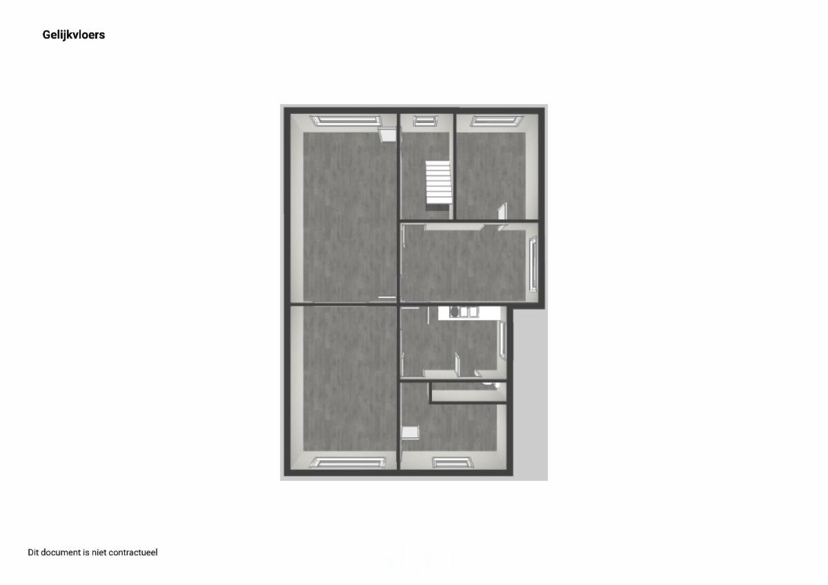 Op het gelijkvloers bevinden zich een inkom- en traphal, een woon- en eetkamer, een aparte eetplaats en een keuken met aansluitende berging. Verder is er een badkamer met toilet, een voorplaats die perfect kan dienen als kleine slaapkamer of bureau en een veranda achteraan