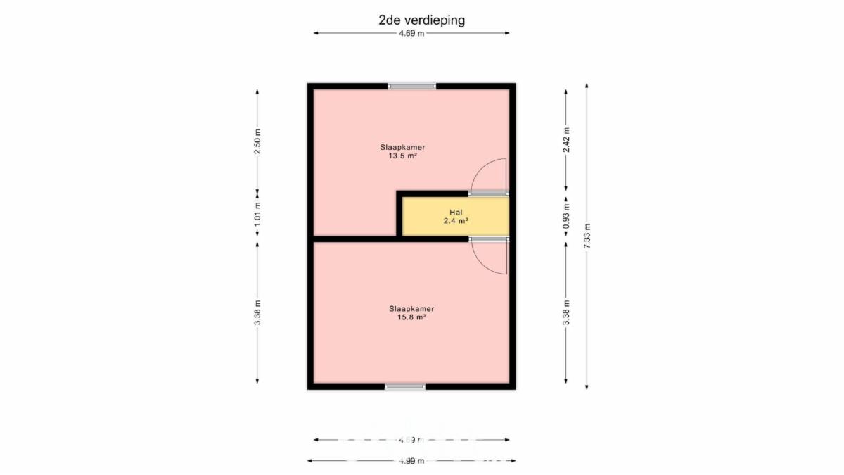 De tweede verdieping is volgt ingedeeld: