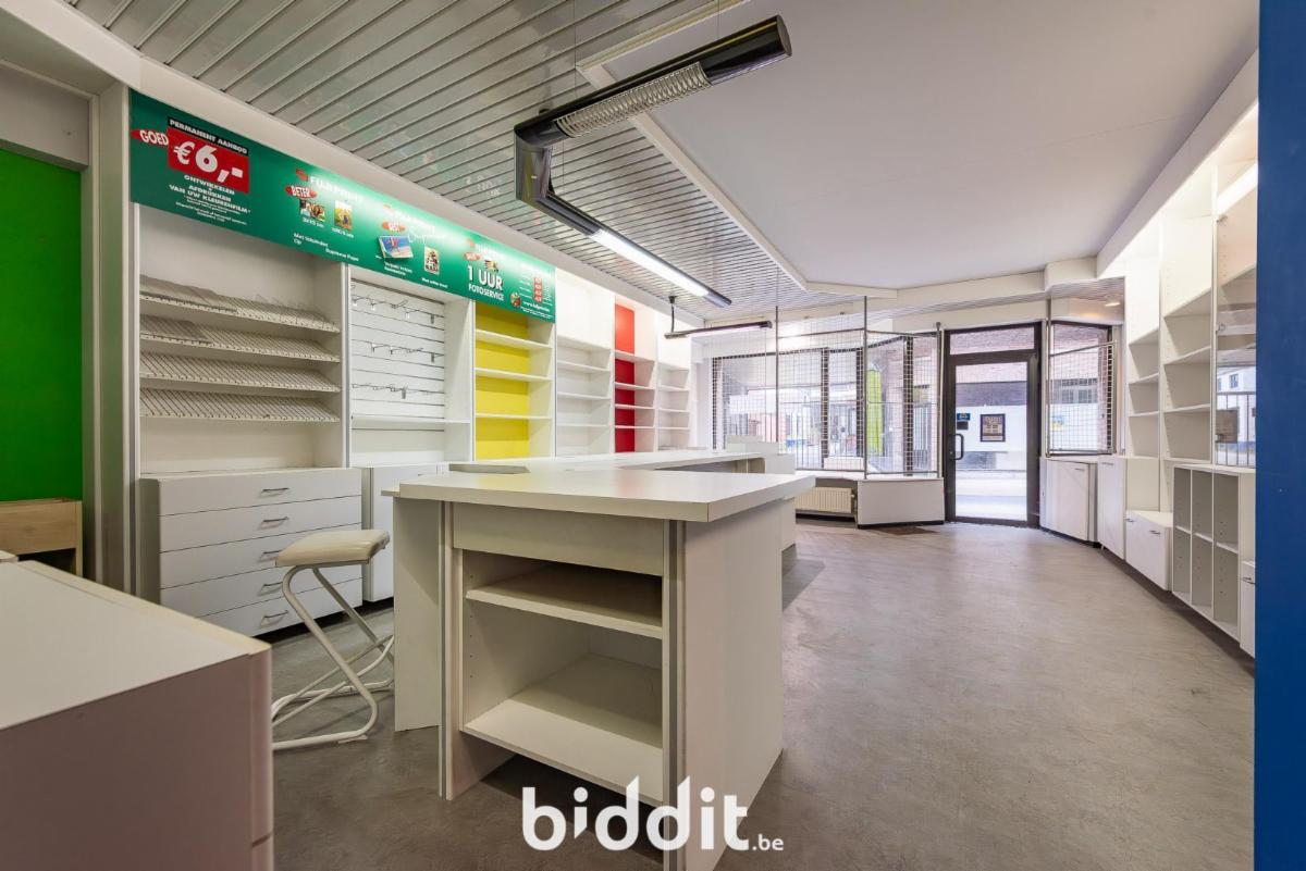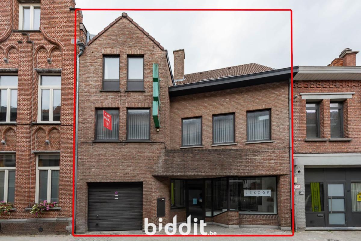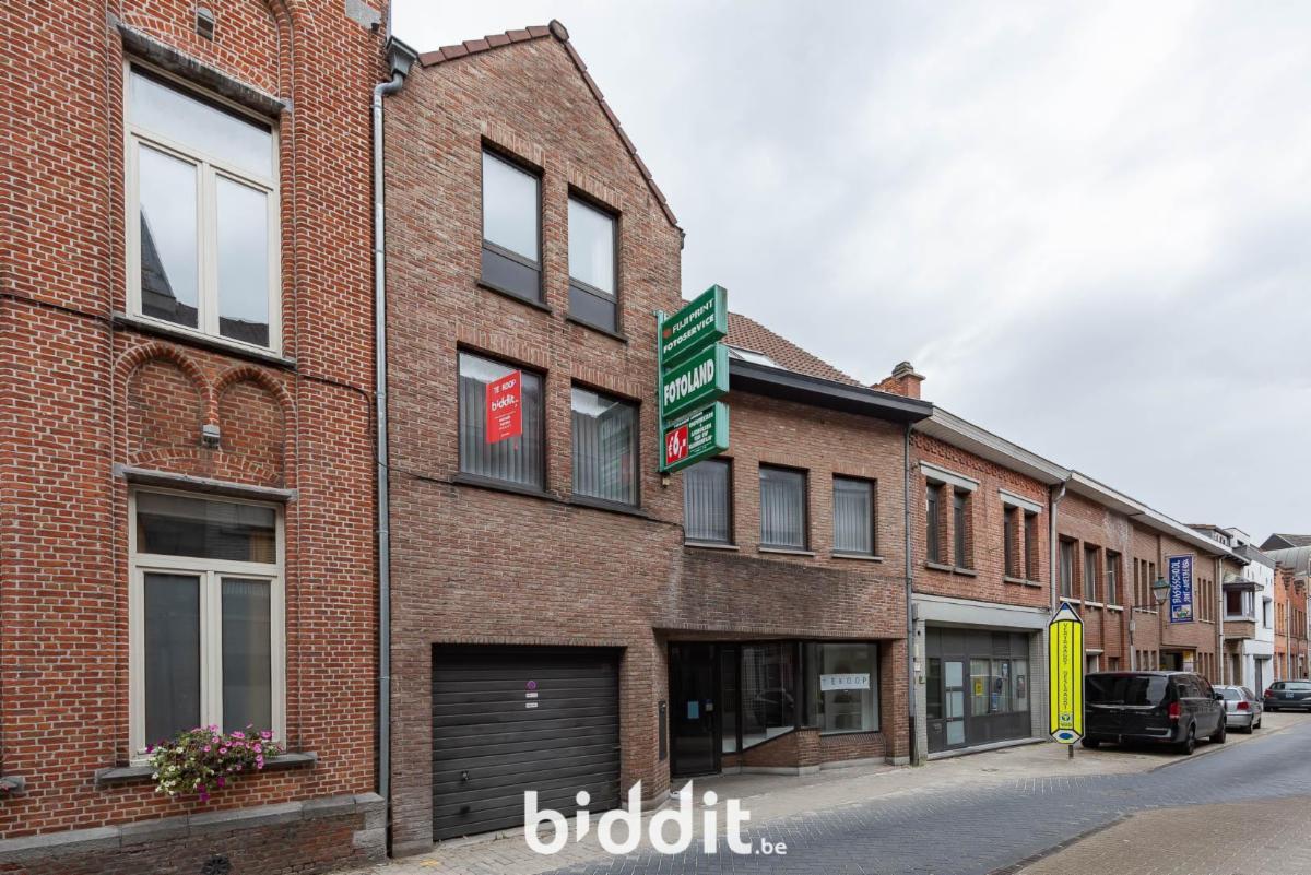 Gelijkvloers : winkelruimte, bureelruimte en tuin, garage;
