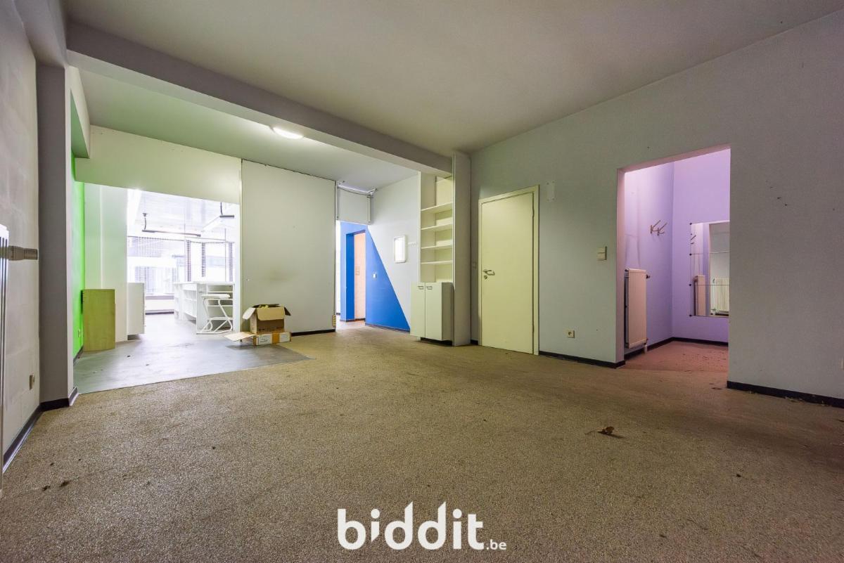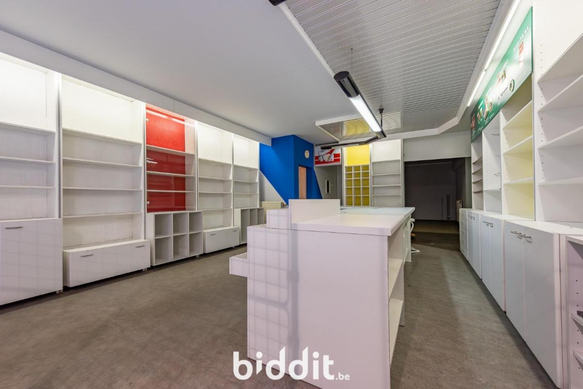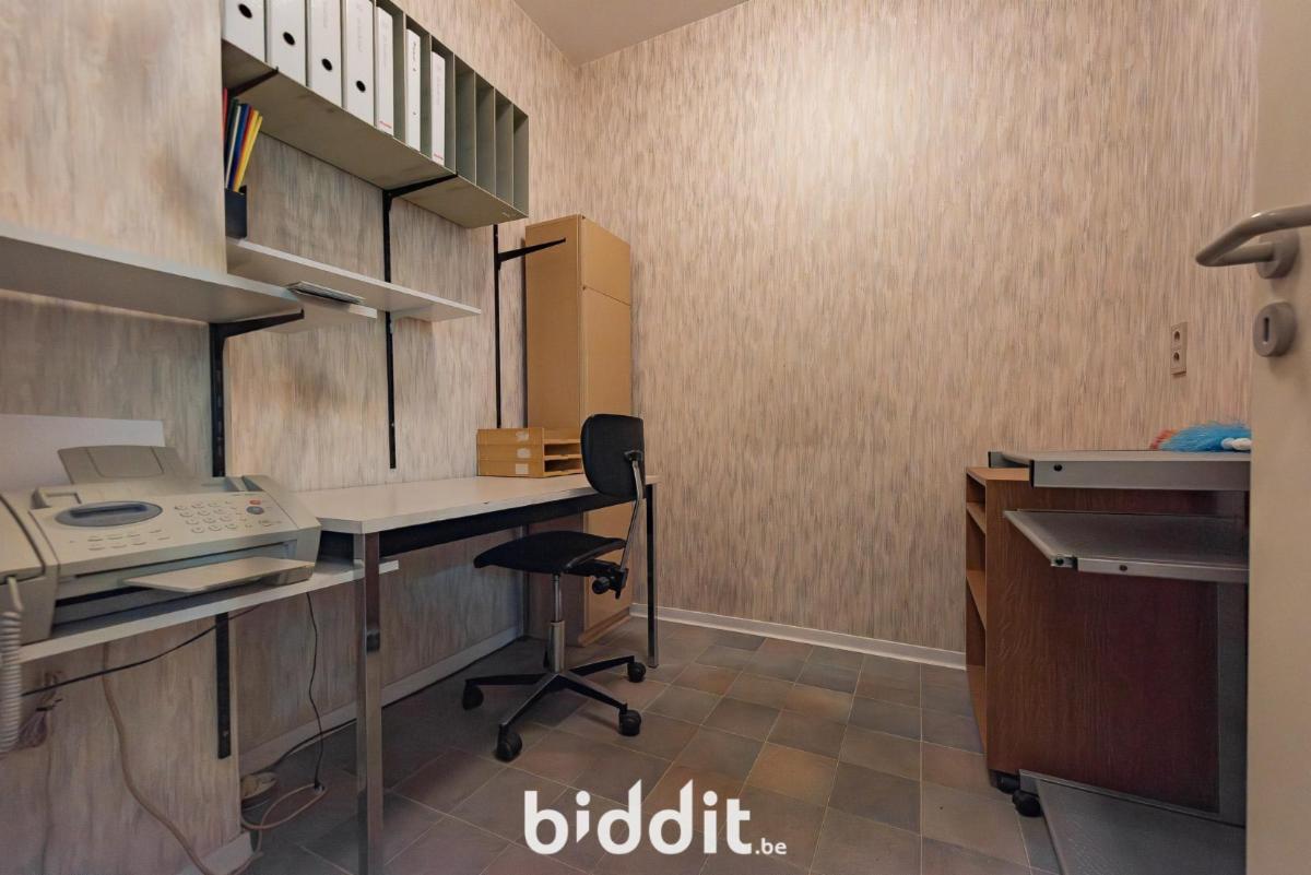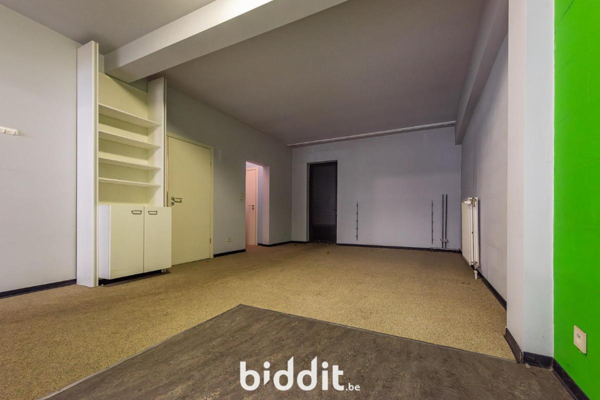 Gelijkvloers : winkelruimte, bureelruimte en tuin, garage;