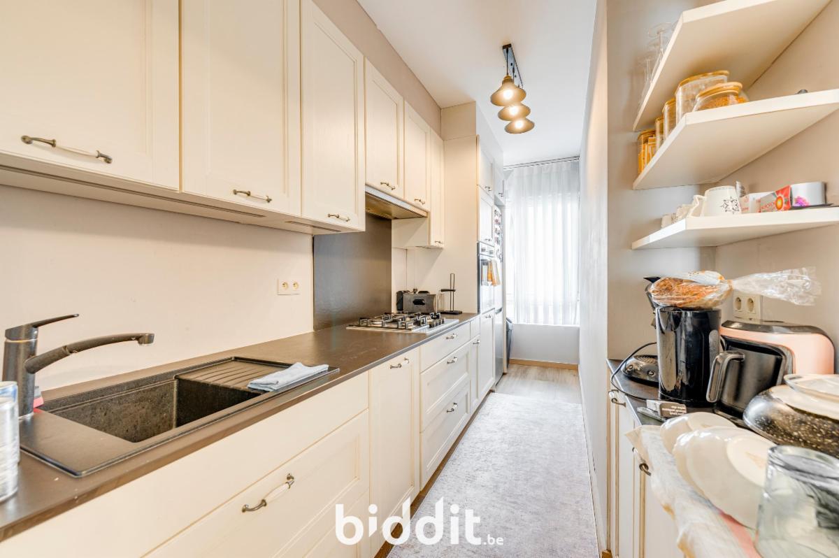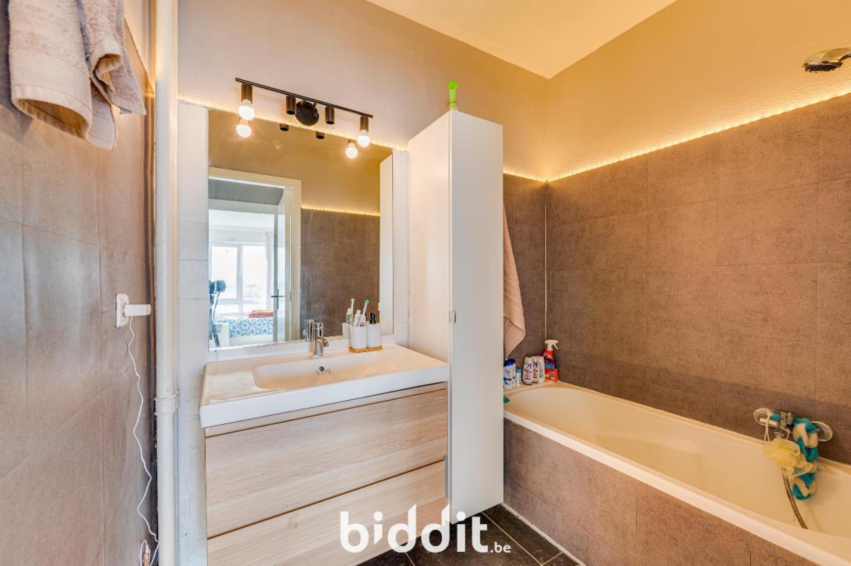 Omvattende inkomhal, living, keuken, badkamer, 2 slaapkamers, wc, balkon. N.g.k.i. 1.048€. Bewoond door eigenaar. Gemengd gebied, structurerende ruimte, omringd door handelskern. EPC B-/88. Contr. elektr. conform. Bezoeken (vanaf 25/4 tem 13/5) : woensdagen van 15-17u en zaterdagen van 9-11u.