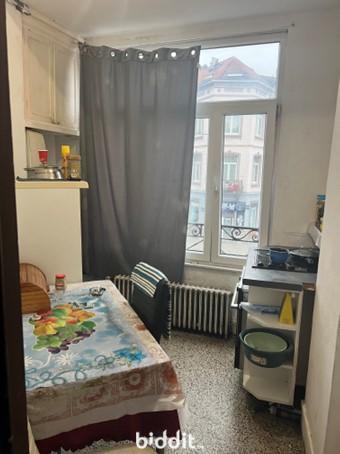 Omvattende inkomhal, aparte wc, keuken, living, 1 slaapkamer, badkamer, kelder « Cave 2 » op ondergr. verd. N.g.k.i. 475€. Verhuurd. Woongebied, GCHEWS. EPC G/383. Contr. elektr. niet conform. Bezoeken : zaterdagen 4-11-18/4 van 12u30-14u30 en woensdagen 8-15-22/4 van 11-13u.