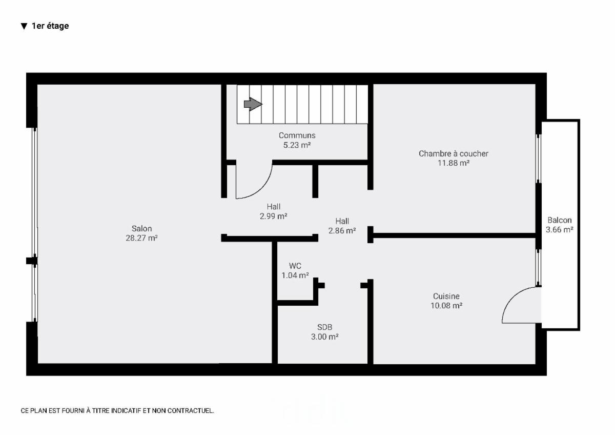 Het appartement « lot 2 » op 1e verd.