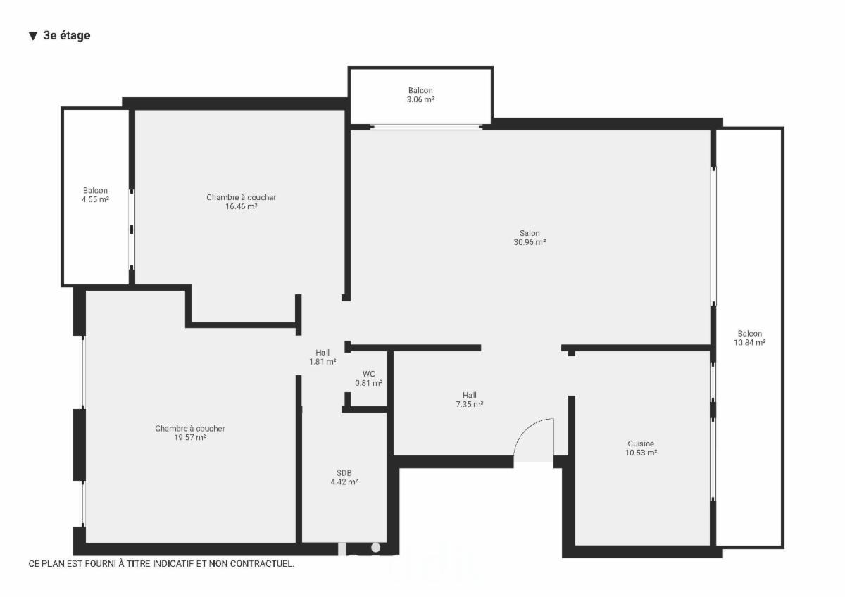 Omvattende : hall, wc, 3 bergplaatsen, living, keuken, beiden met terras, 2 slaapkamers waarvan één met terras en badkamer, kelder nr D3. N.g.k.i. 1.541€. EPC : D-/203. Contr. elektr. niet conform.