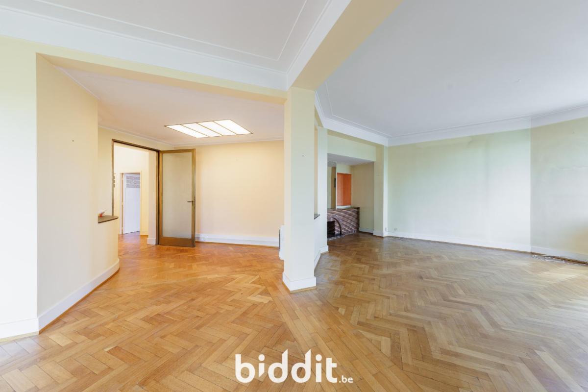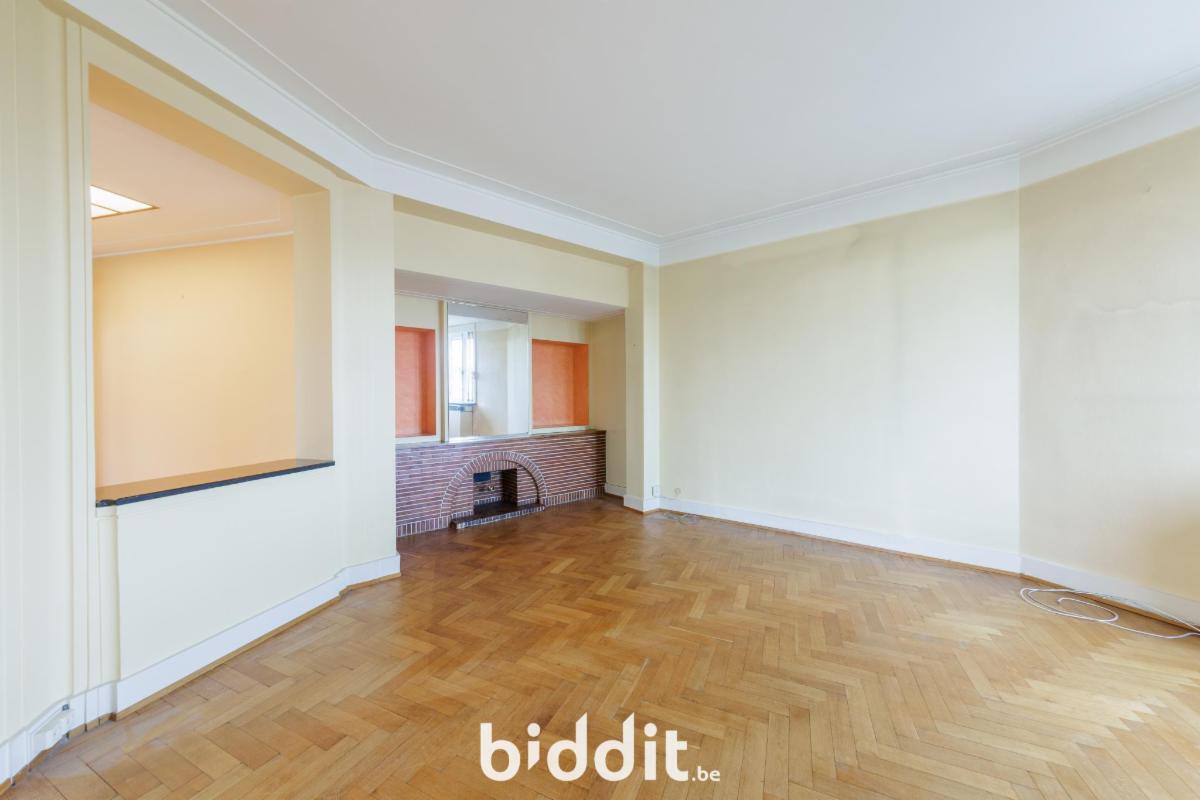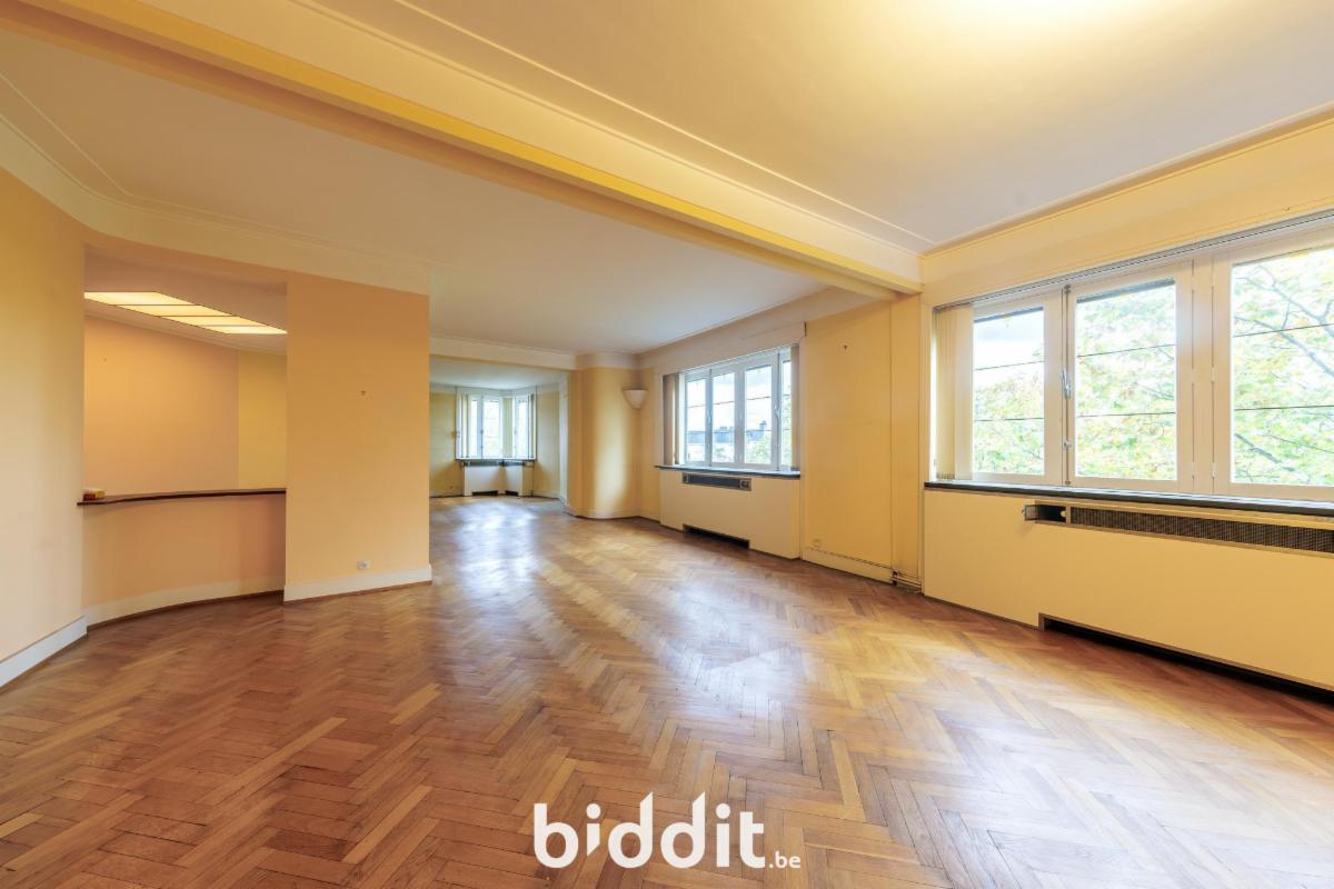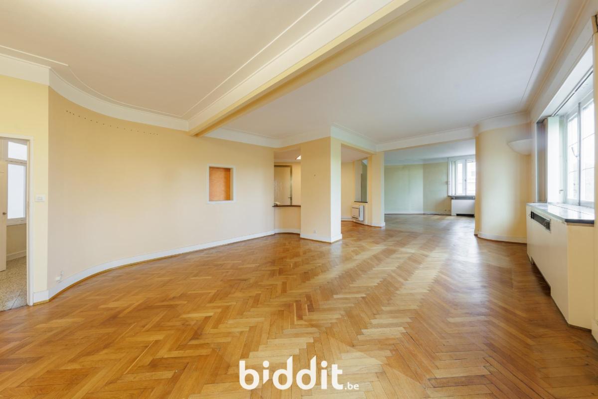 Omvattende inkomhal, doorloop, rokersruimte, salon, eetplaats, doorloop met directe toegang tot de trappenhal, wc, 2 slaapkamers met lavabo, bureau, badkamer, terras, 2 kelders op ondergr. verd. Bew. opp. +/- 210 m². Op de 7e verd. 2 meidkamers « C17 ». Garage nr 4 gelegen Joseph Stallaertstraat. N.g.k.i. 2.478€. Vrij van gebruik. Woongebied, GCHEWS. EPC D/172. Contr. elektr. niet conform. Bezoeken : zaterdagen 8-15-22-29/11 van 9-11u en maandagen 10-17-24/11, 1/12 van 10-12u.