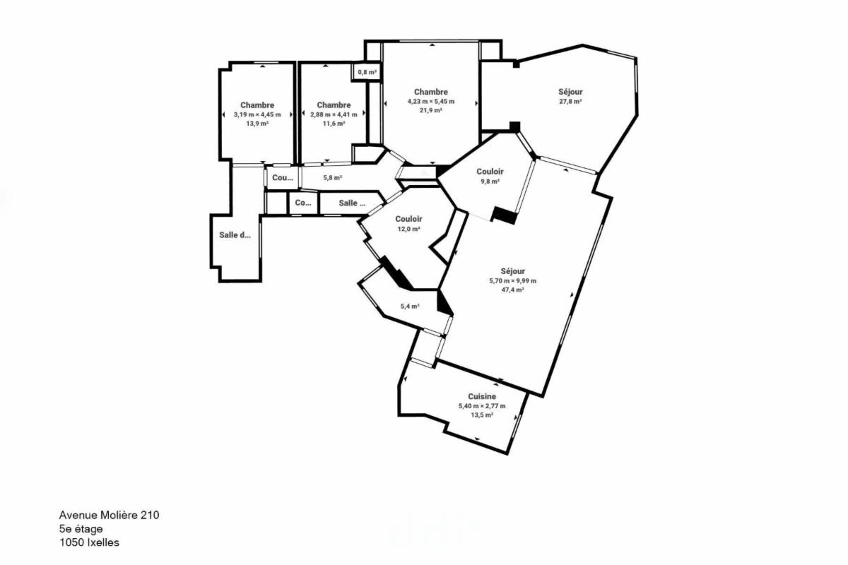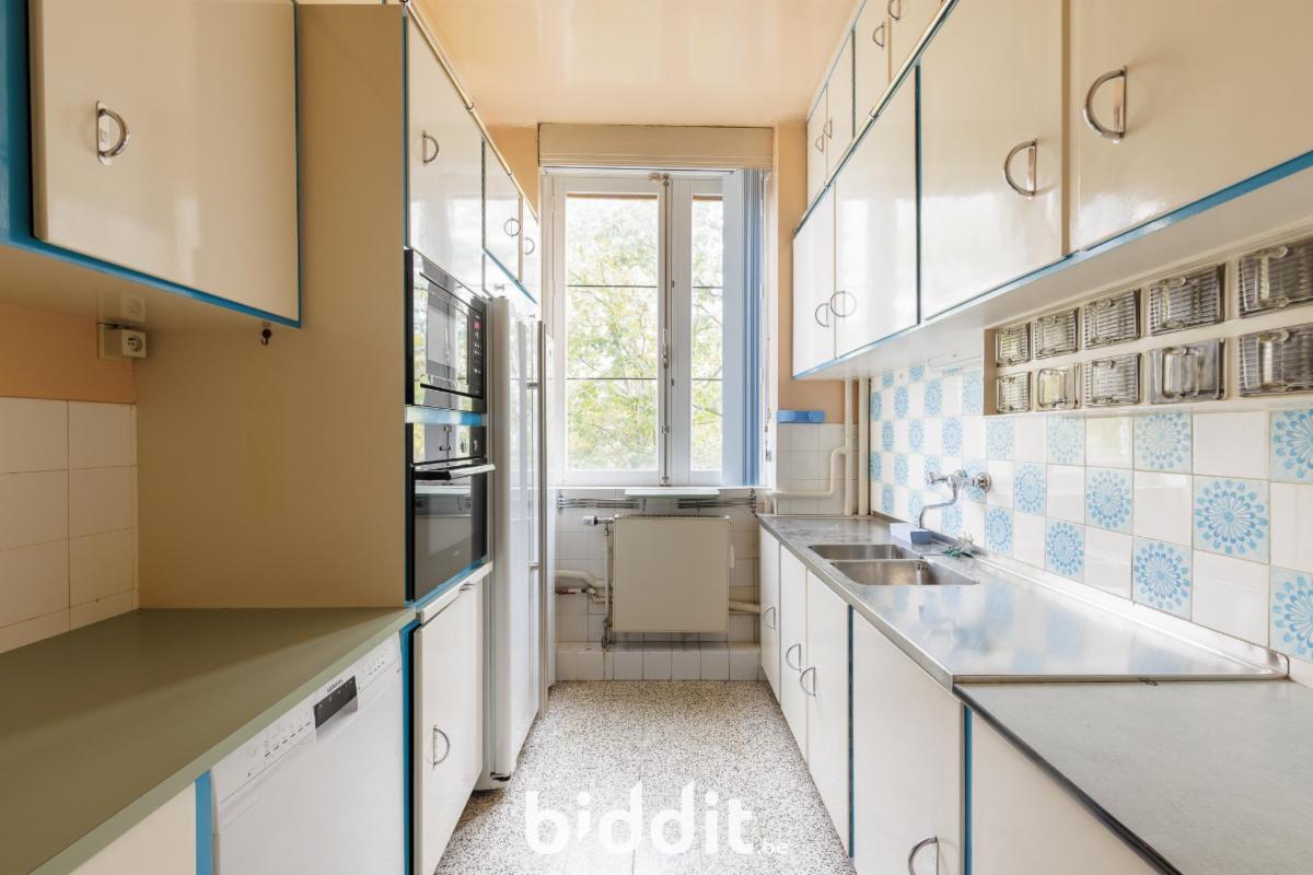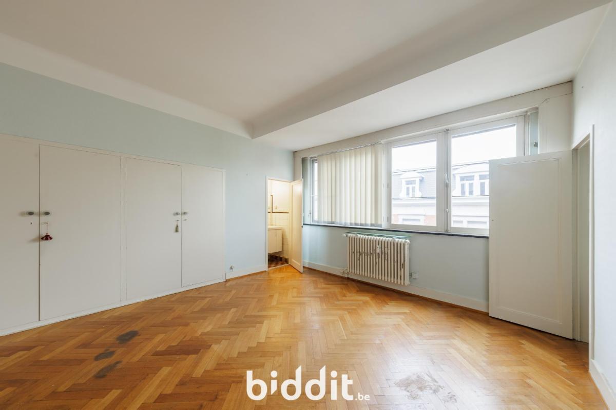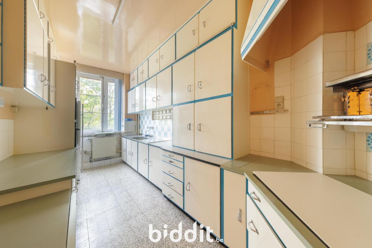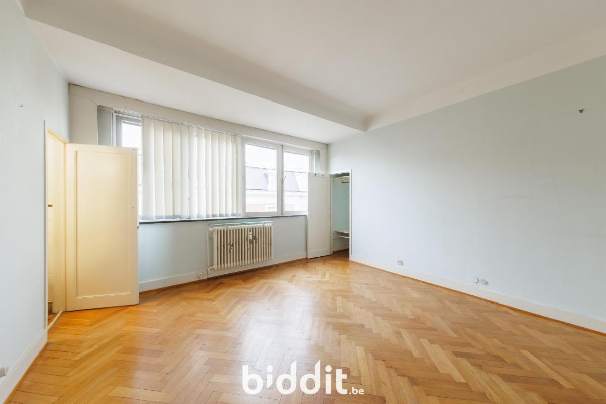 Omvattende inkomhal, doorloop, rokersruimte, salon, eetplaats, doorloop met directe toegang tot de trappenhal, wc, 2 slaapkamers met lavabo, bureau, badkamer, terras, 2 kelders op ondergr. verd. Bew. opp. +/- 210 m². Op de 7e verd. 2 meidkamers « C17 ». Garage nr 4 gelegen Joseph Stallaertstraat. N.g.k.i. 2.478€. Vrij van gebruik. Woongebied, GCHEWS. EPC D/172. Contr. elektr. niet conform. Bezoeken : zaterdagen 8-15-22-29/11 van 9-11u en maandagen 10-17-24/11, 1/12 van 10-12u.