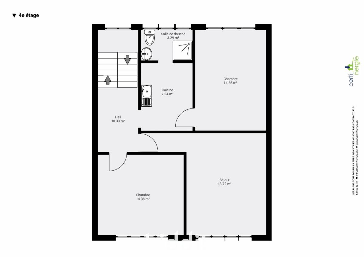 Omvattende inkomhal, 2 slaapkamers, living, keuken, douchecel met wc.