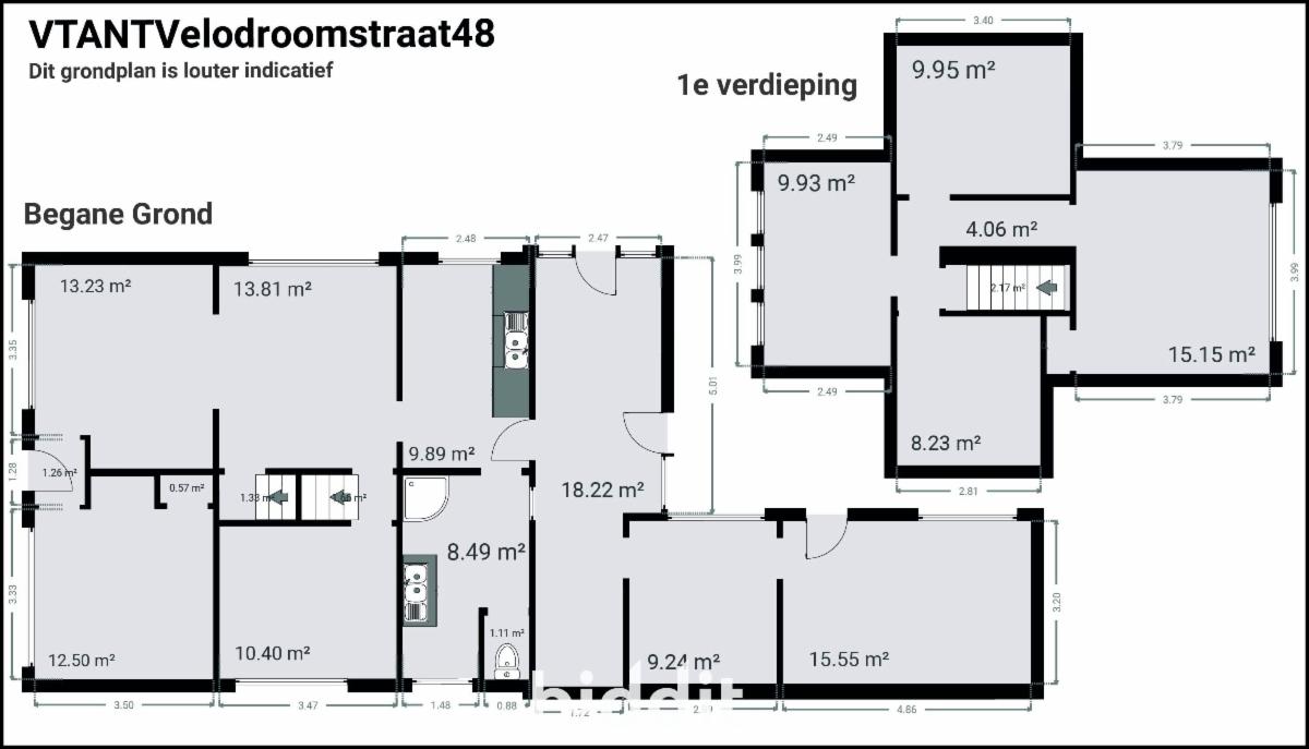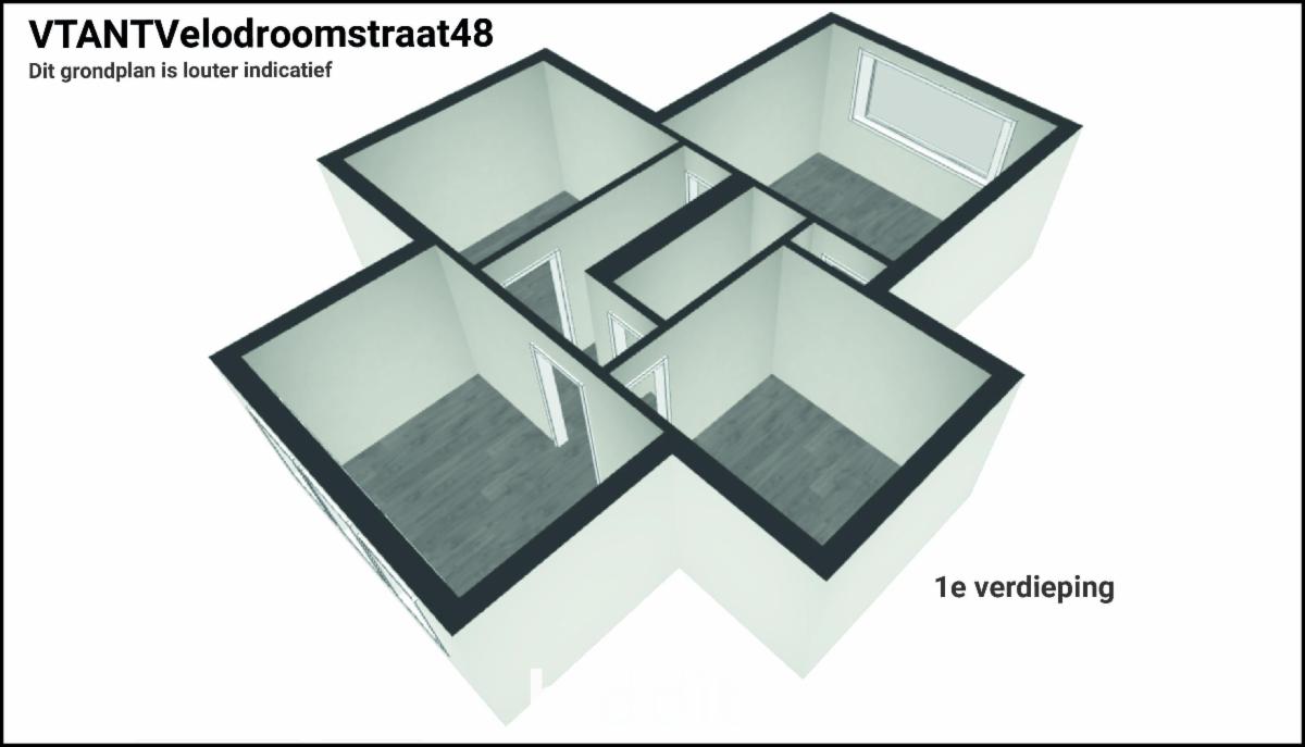 - 1e verdieping: hal, 3 slaapkamers en bureel.