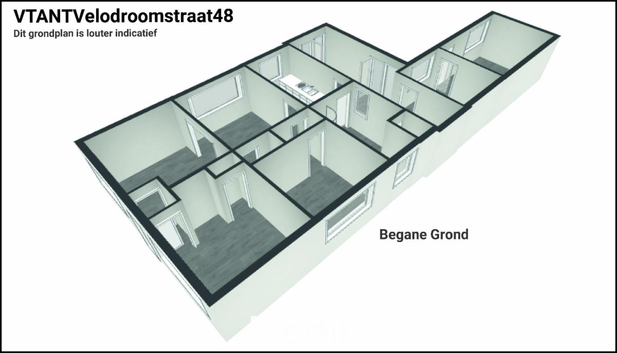 - gelijkvloers: inkomhal met trap, woonkamer, eetkamer, berging, keuken, wasplaats , badkamer en toilet, veranda;