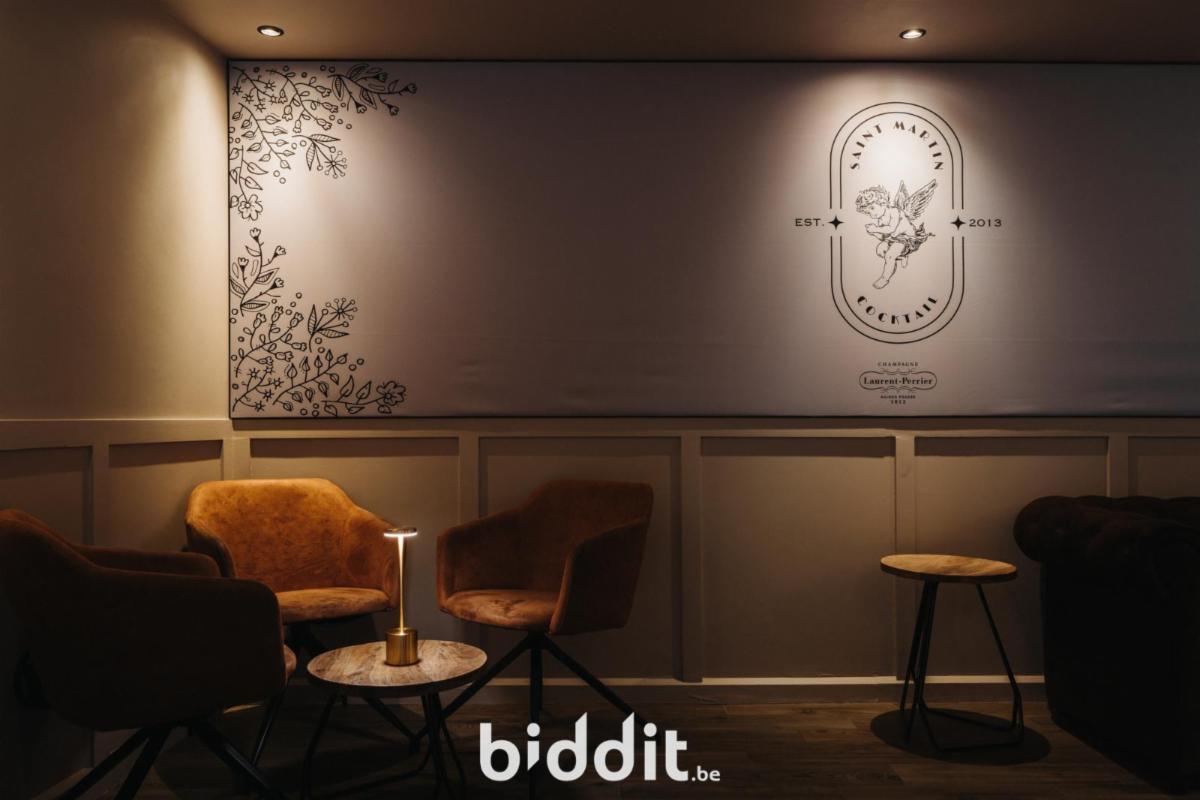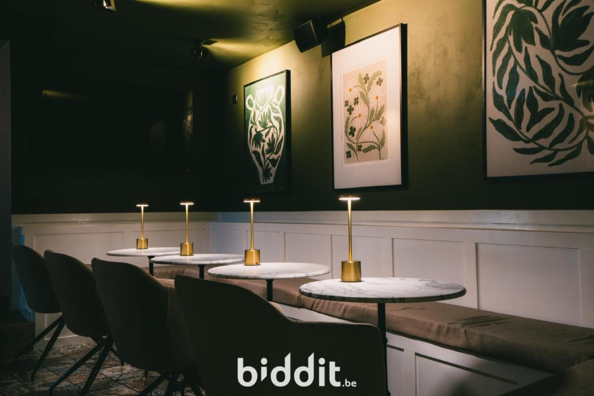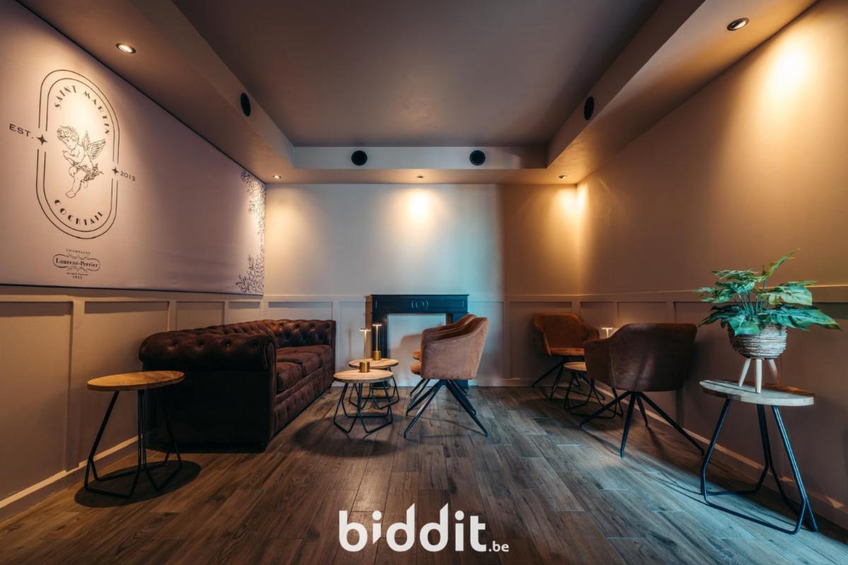 une salle de bar entièrement équipée avec comptoir, banquettes, tables, chaises et luminaires d’ambiance, …