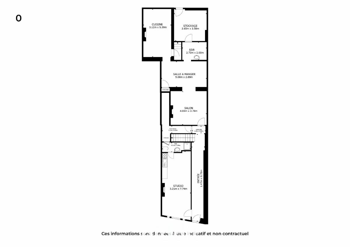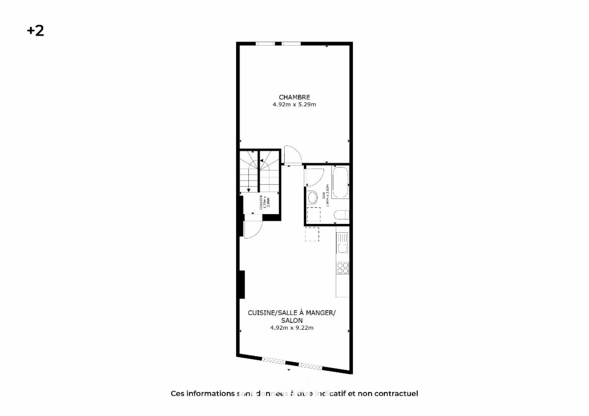 Rez : Studio, salon, salle-à-manger, salle de bains, cuisine.