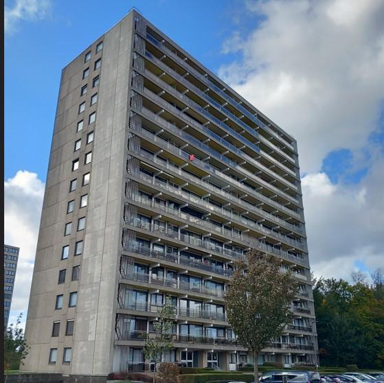 Gelegen op de 14e verdieping in residentie Brandenburg – Bosuil 76 bus 59 – 2100 Deurne bereiken we via een lift en is voorzien van een veiligheidsdeur die toegang geeft tot de hal die voorzien is van een videofoon en vestiaire.
