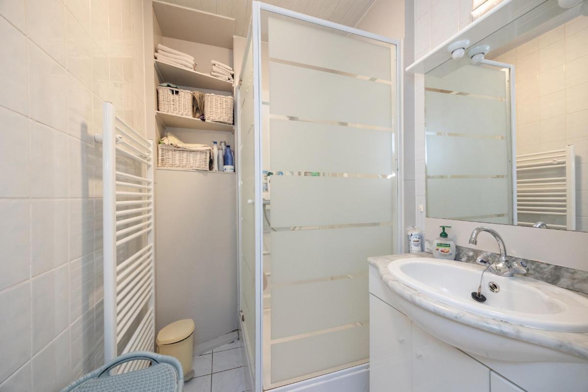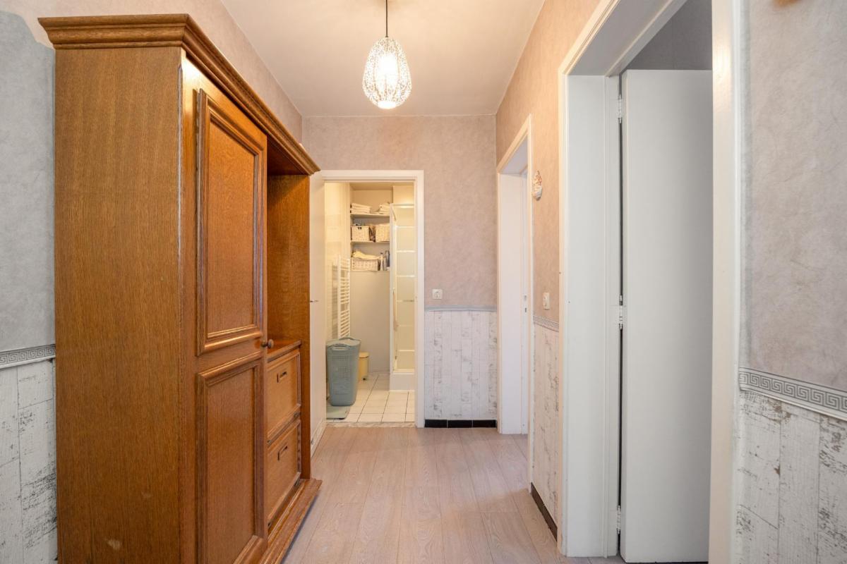 Via de inkomhal bereikt u de eerste verdieping waar het appartement zich bevindt. De woonruimte bestaat uit een aangename living met aansluitende keuken. Verder zijn er twee slaapkamers, waarvan één directe toegang biedt tot de tuin. Daarnaast beschikt het appartement over een badkamer, uitgerust met een lavabomeubel en een douche.