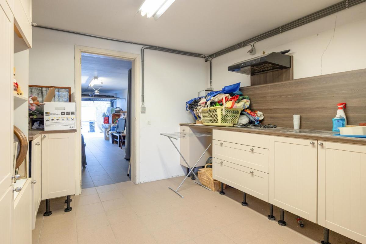 Op het gelijkvloers bevindt zich een garage met oprit, evenals een bijkeuken/aanpalende berging die extra opslagmogelijkheden biedt.