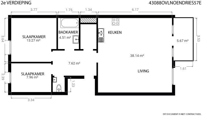 Dit verzorgde appartement combineert een praktische indeling met hedendaags wooncomfort. Via de inkomhal bereikt u een aparte toiletruimte en de lichtrijke leefruimte met open keuken, die rechtstreeks toegang geeft tot het terras. De badkamer is voorzien van een ligbad en lavabo. 2 volwaardige slaapkamers en een praktische berging vervolledigen de indeling.