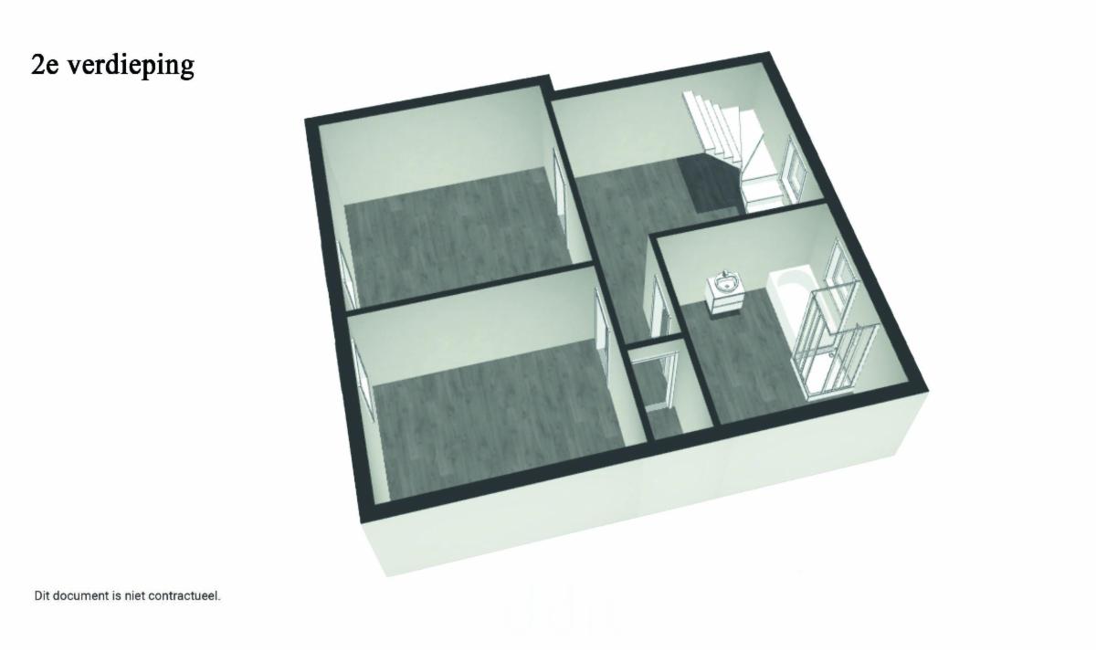 - op de tweede verdieping : overloop, badkamer, slaapkamer 1, slaapkamer 2 ;