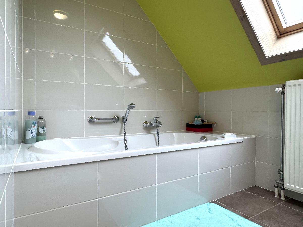 Verdiep: 4 slaapkamers (waarvan 1 met ingemaakte kasten), ingerichte badkamer (douche, ligbad en lavabo), toilet.