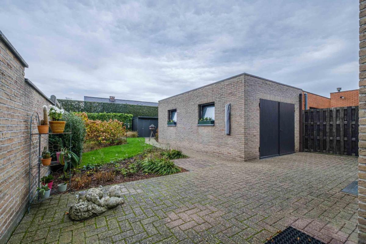 •Buiten: Volledig omheinde, zonnige tuin met overdekt terras, tuinberging en een afzonderlijke garage met recent vernieuwde roofing.