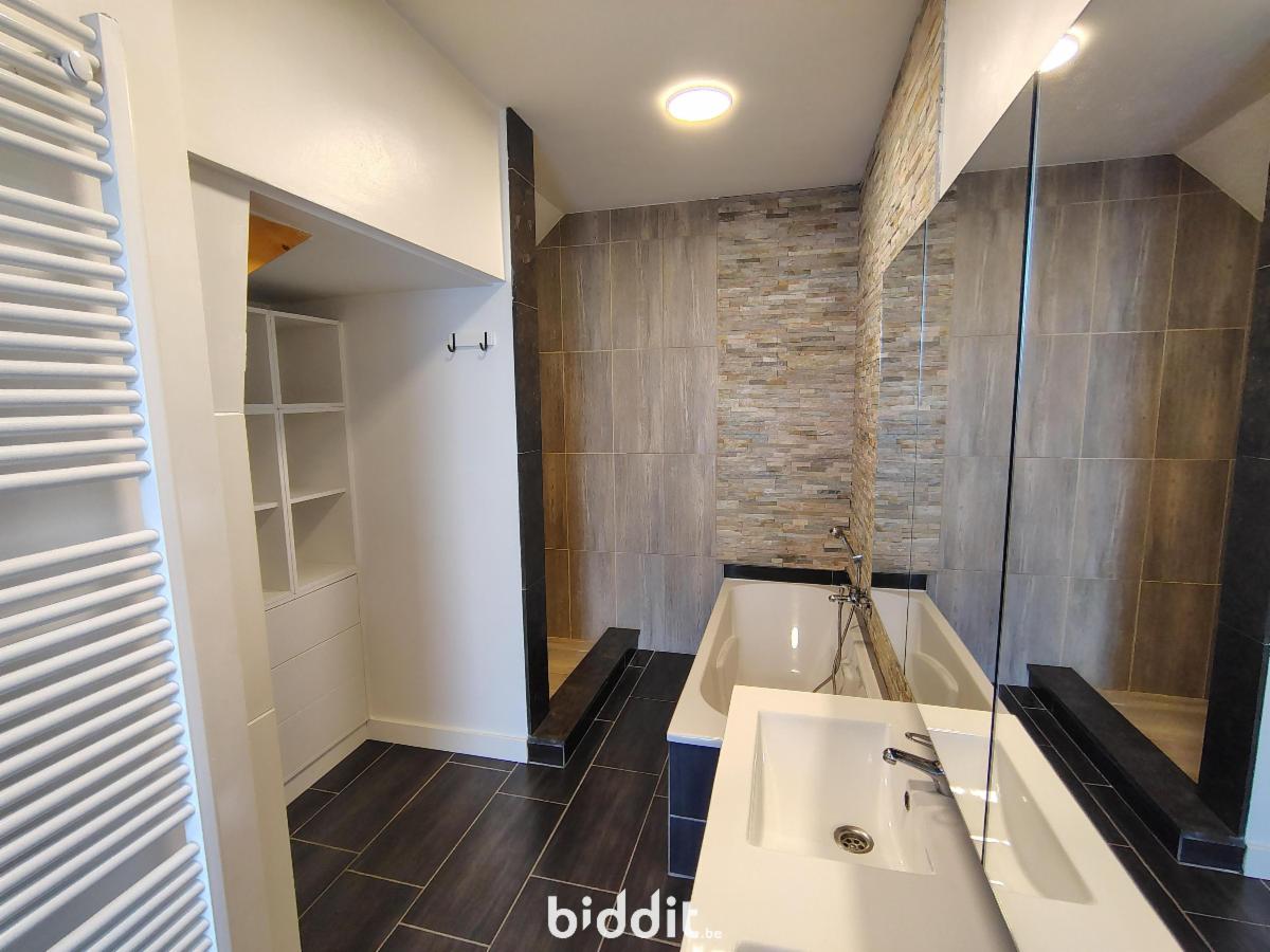 Bij binnenkomst verwelkomt een stijlvolle inkomhal u in dit tot mooi afgewerkte appartement. Op het gelijkvloers vindt u een eerste ruime slaapkamer en een moderne badkamer met zowel een ligbad als een douche. Daarnaast is er een afzonderlijk toilet.