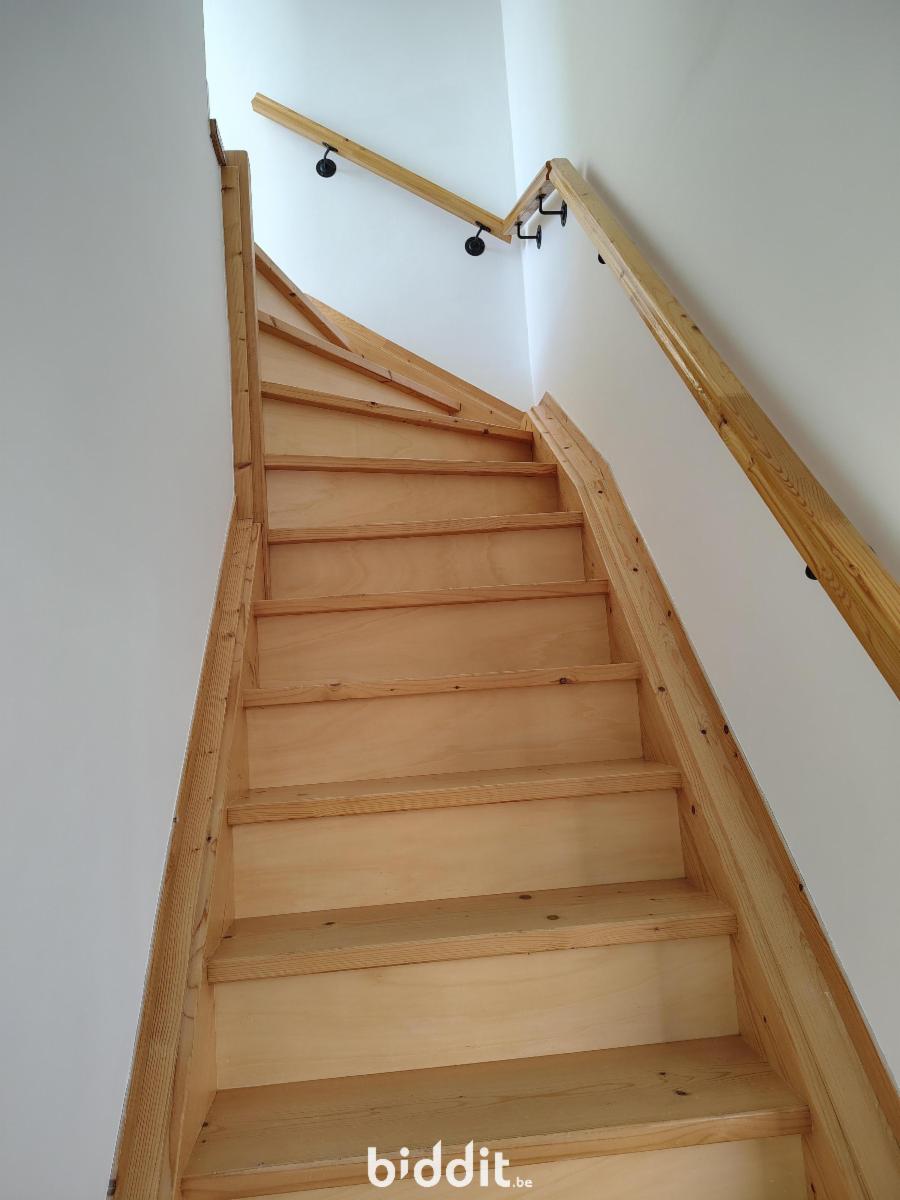 Op de eerste verdieping bevindt zich een tweede, ruime slaapkamer, bereikbaar via een elegante houten trap.