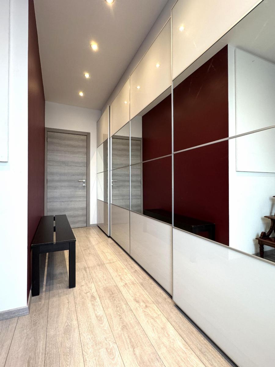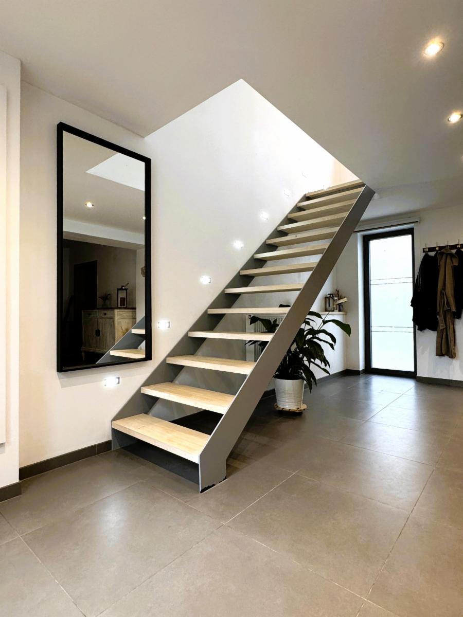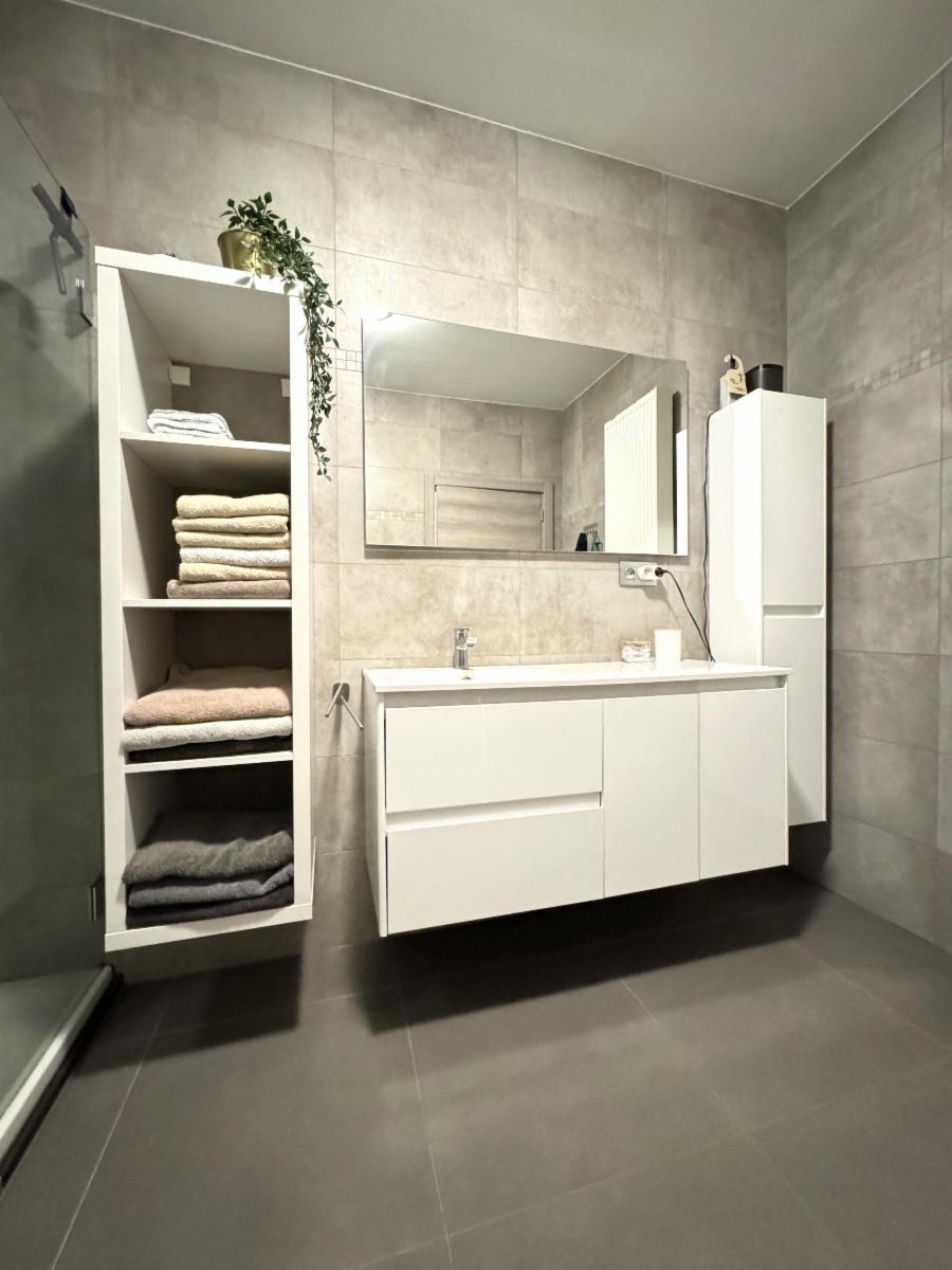 Ruime en lichtrijke living met eet-en zithoek, geïnstalleerde keuken met eiland (koelkast, inductie-kookplaat, oven, microgolf en vaatwas), logeerkamer en ingerichte badkamer (inloopdouche en lavabo).