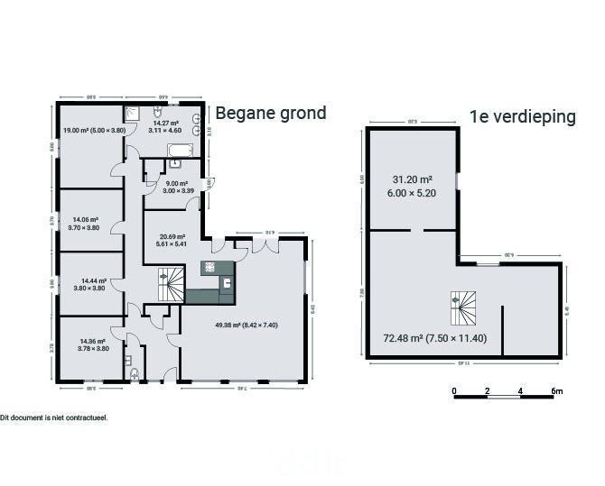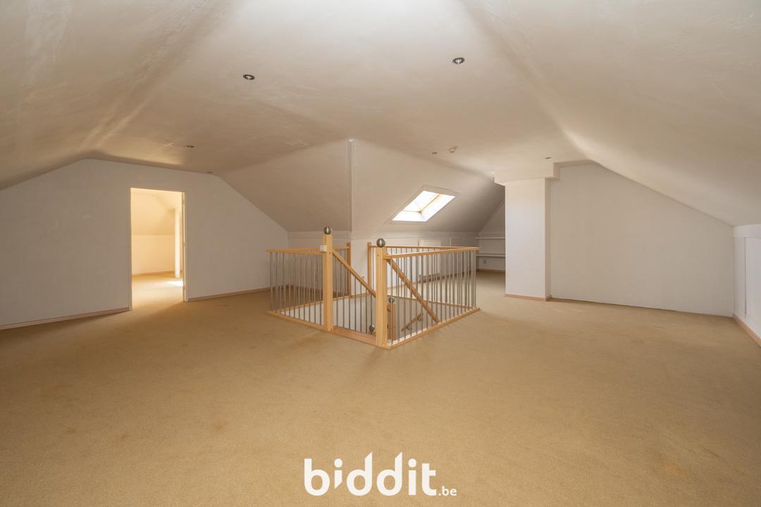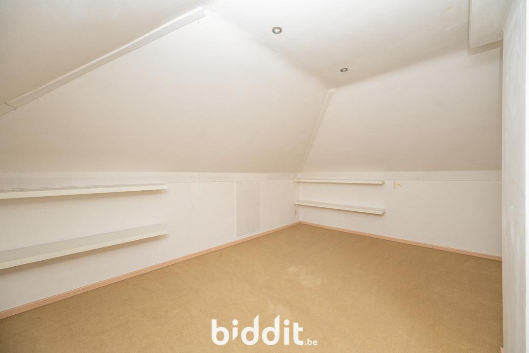 De eerste verdieping bestaat momenteel uit twee (opslag)ruimtes, waar eventueel nog bijkomende kamers van kunnen worden gemaakt.