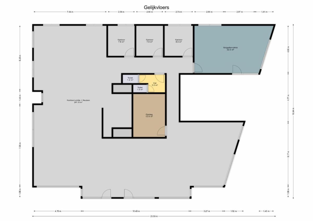 Met een functionele indeling die zowel privacy als samenwerking mogelijk maakt, is deze kantoorruimte de ideale keuze voor diverse bedrijfsactiviteiten. Of u nu op zoek bent naar een flexibele werkruimte of een professionele vergaderomgeving, dit pand biedt alles wat u nodig heeft.