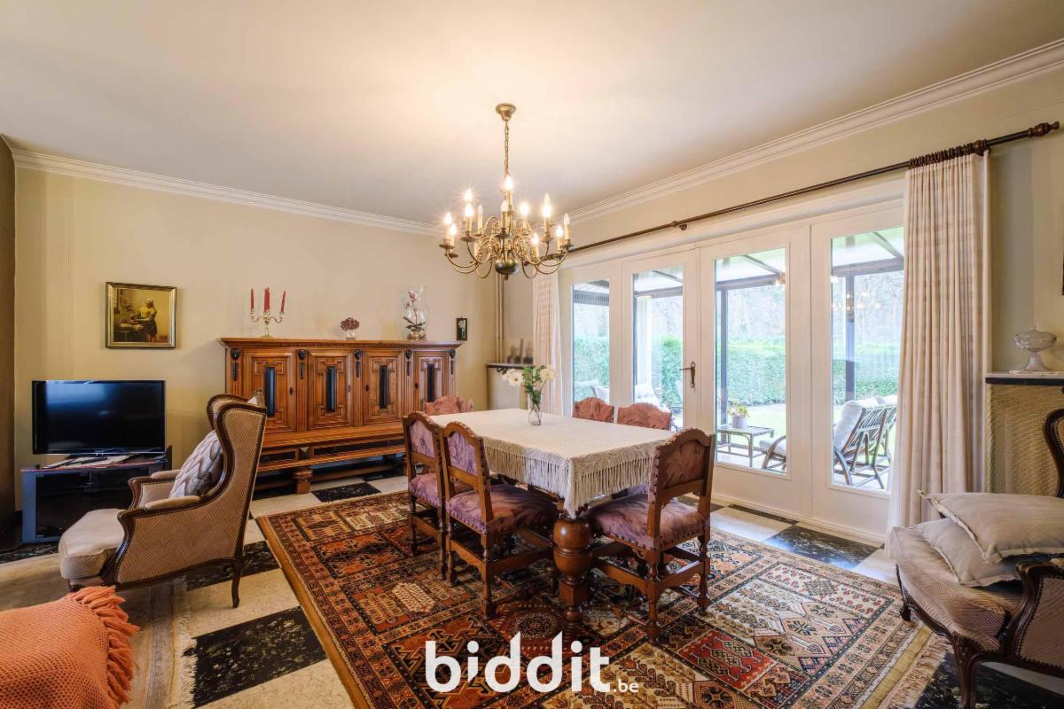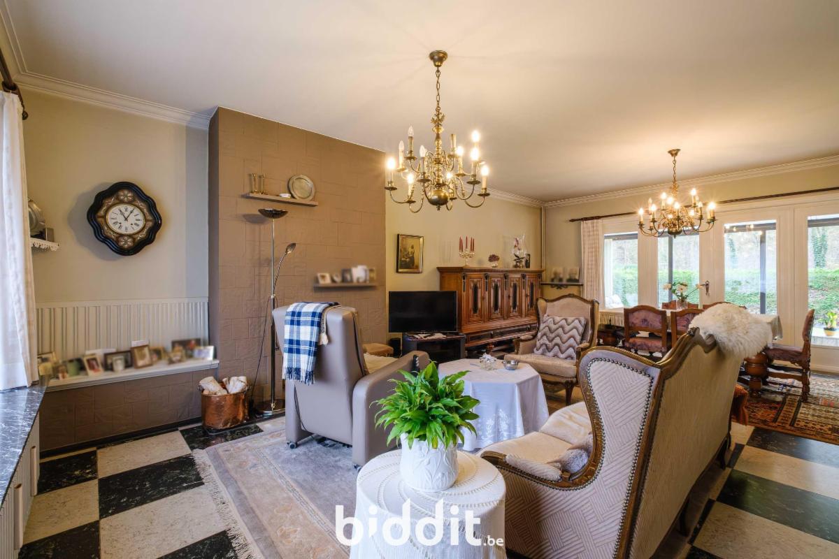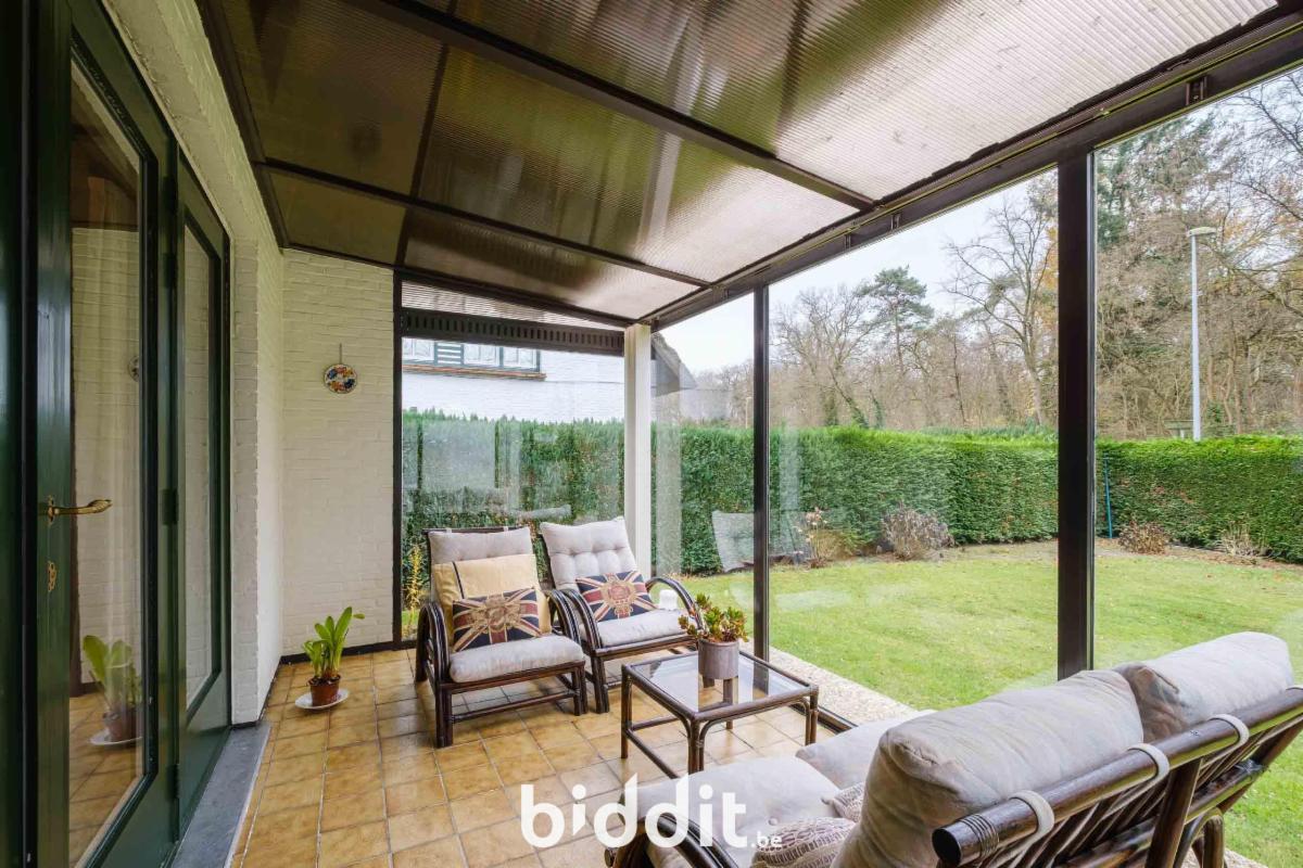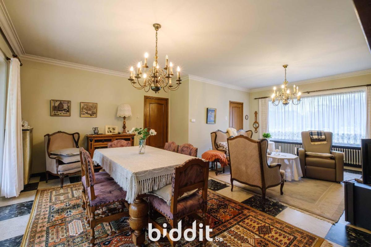 - gelijkvloers: inkom, toilet, woonkamer, keuken, veranda, inpandige garage, kelder;