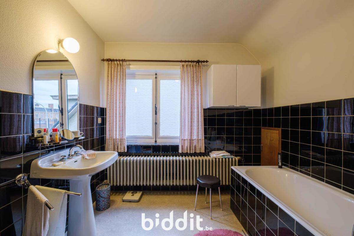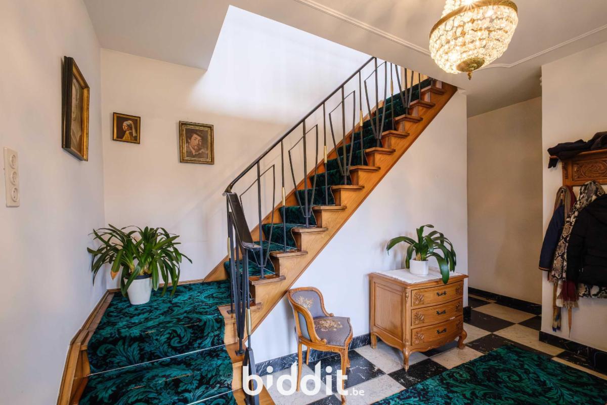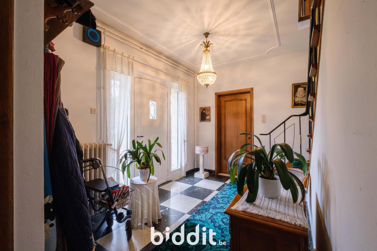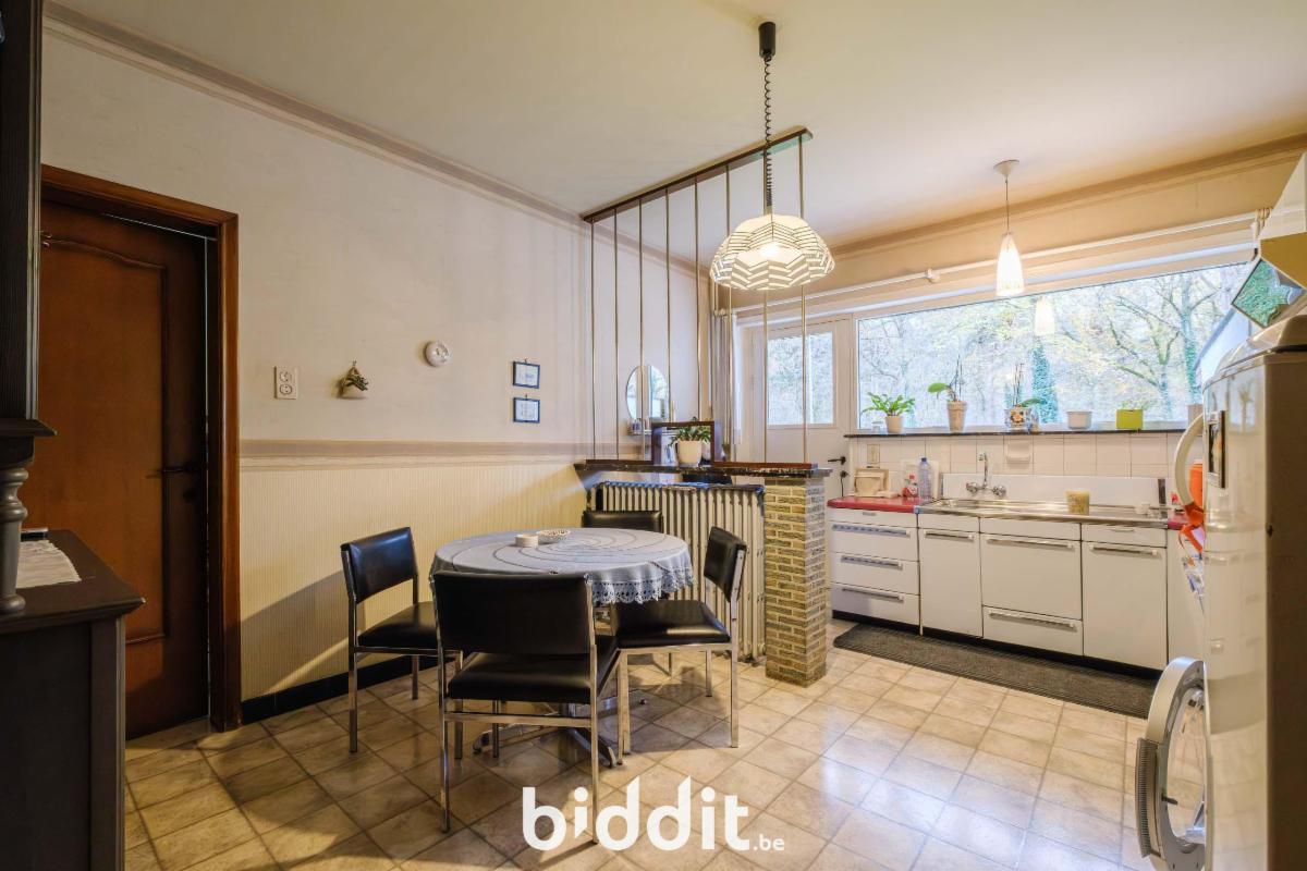 - gelijkvloers: inkom, toilet, woonkamer, keuken, veranda, inpandige garage, kelder;