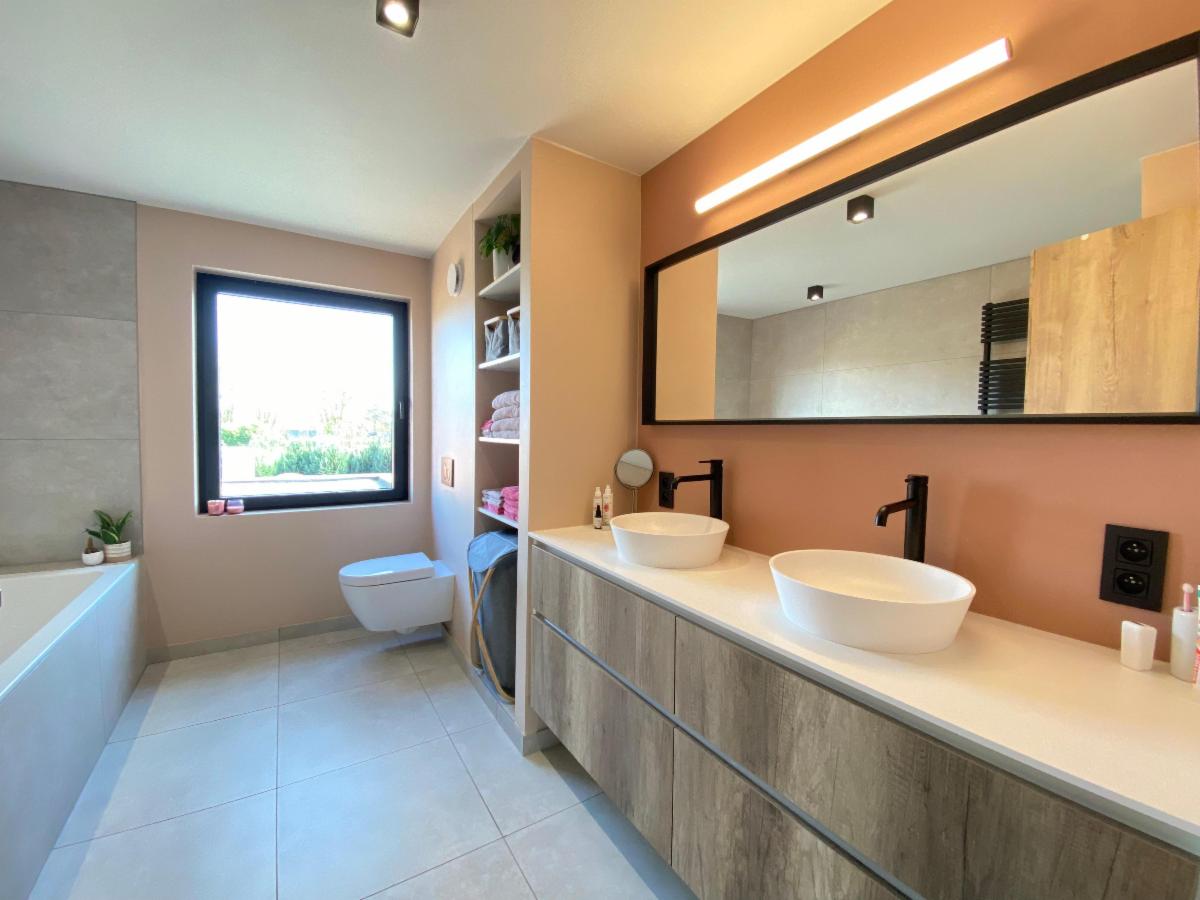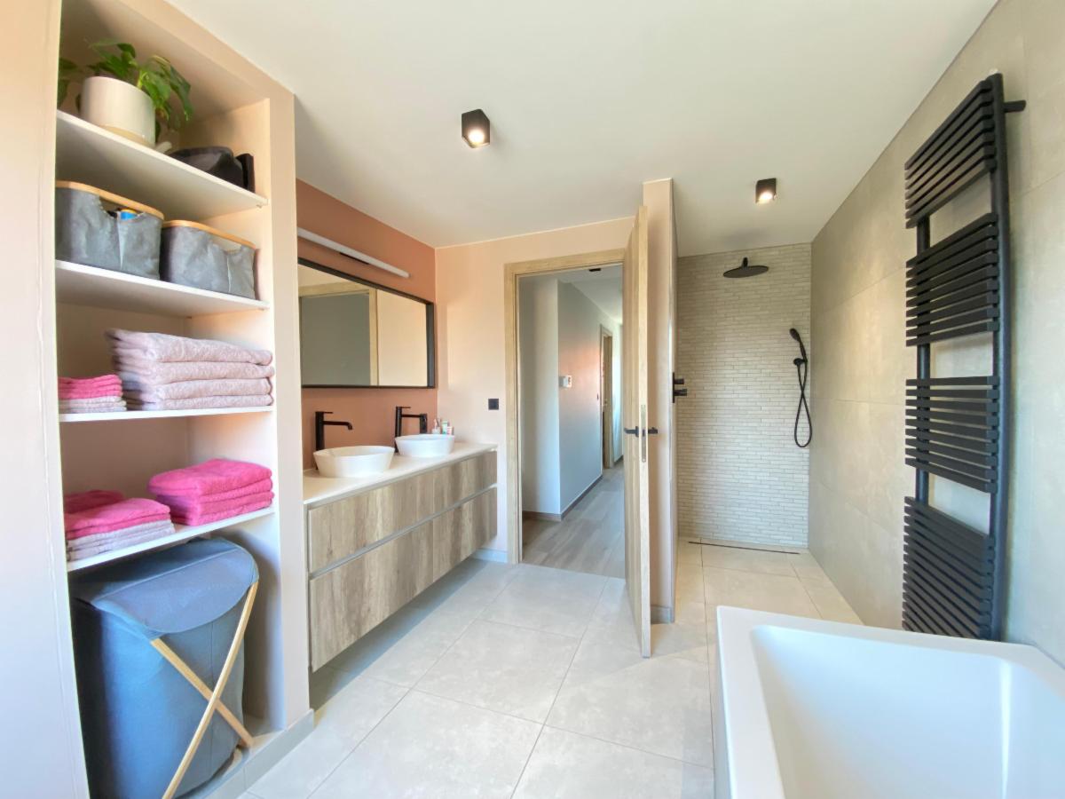 Eerste verd.: via de nachthal naar de eerste twee slaapkamers waarvan de master bedroom voorzien werd van een op maat gemaakte inloopdressing. Er is een badkamer met ligbad inloopdouche toilet handdoekdroger en dubbele lavabo.