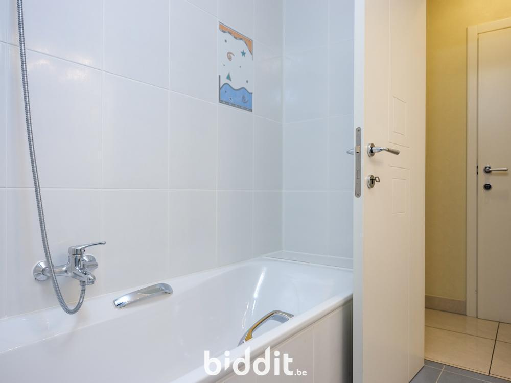 Het appartement beschikt over een inkomhal die toegang geeft tot een lichtrijke leefruimte met open keuken, ideaal voor comfortabel wonen. Verder zijn er twee volwaardige slaapkamers, een badkamer met zowel een ligbad als een aparte douche, en een praktische berging.