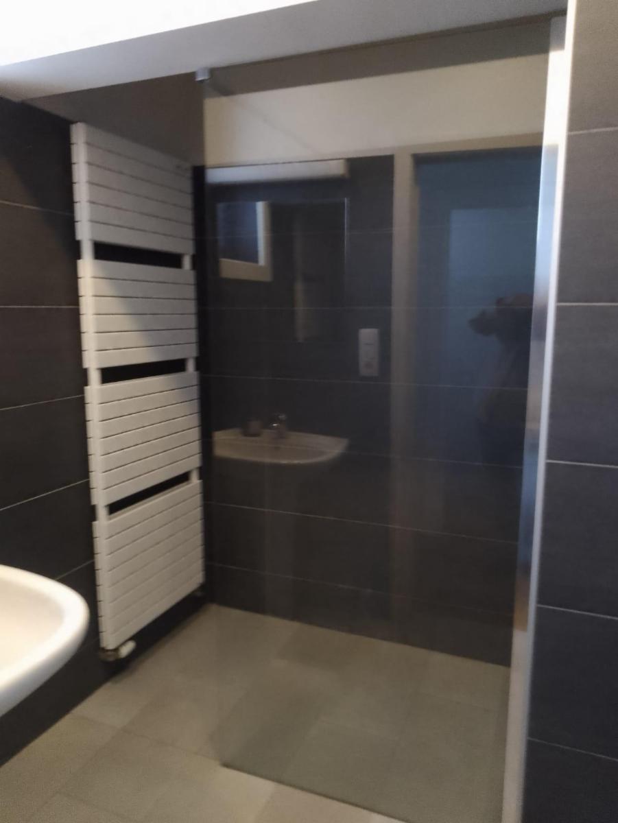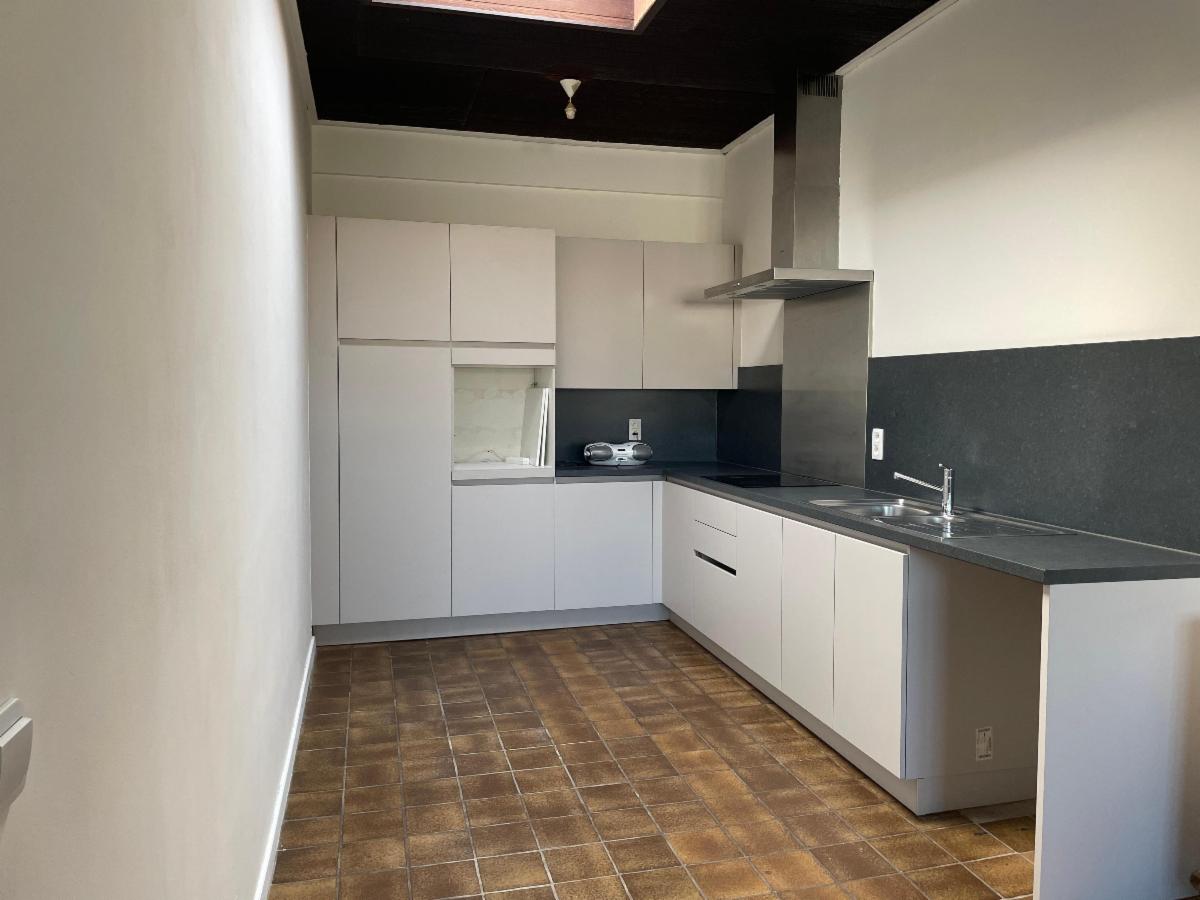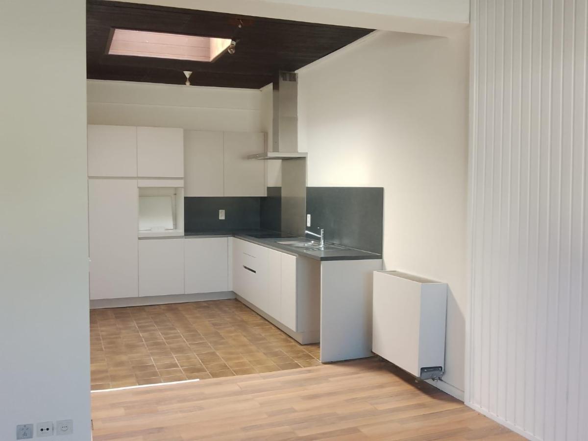 Dit appartement op de eerste verdieping heeft een eigen toegang (buitentrap) en omvat een inkomhal, ruime leefruimte (36m²) met een open ingerichte keuken (10m²), 2 slaapkamers (11,5 en 14 m²), een badkamer met lavabo en inloopdouche en een apart toilet. Verder beschikt dit appartement over een ruime overdekte parkeerplaats en een grote berging van 21 vierkante meter.