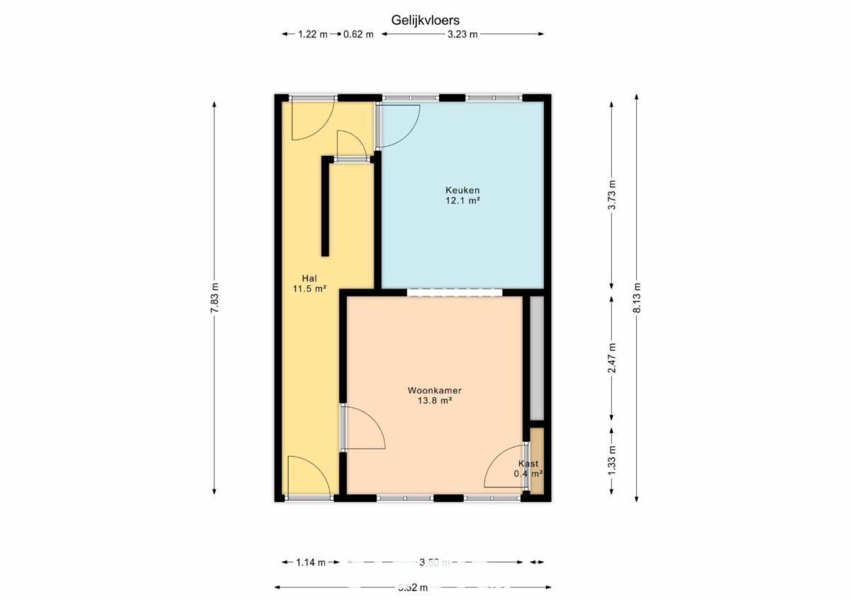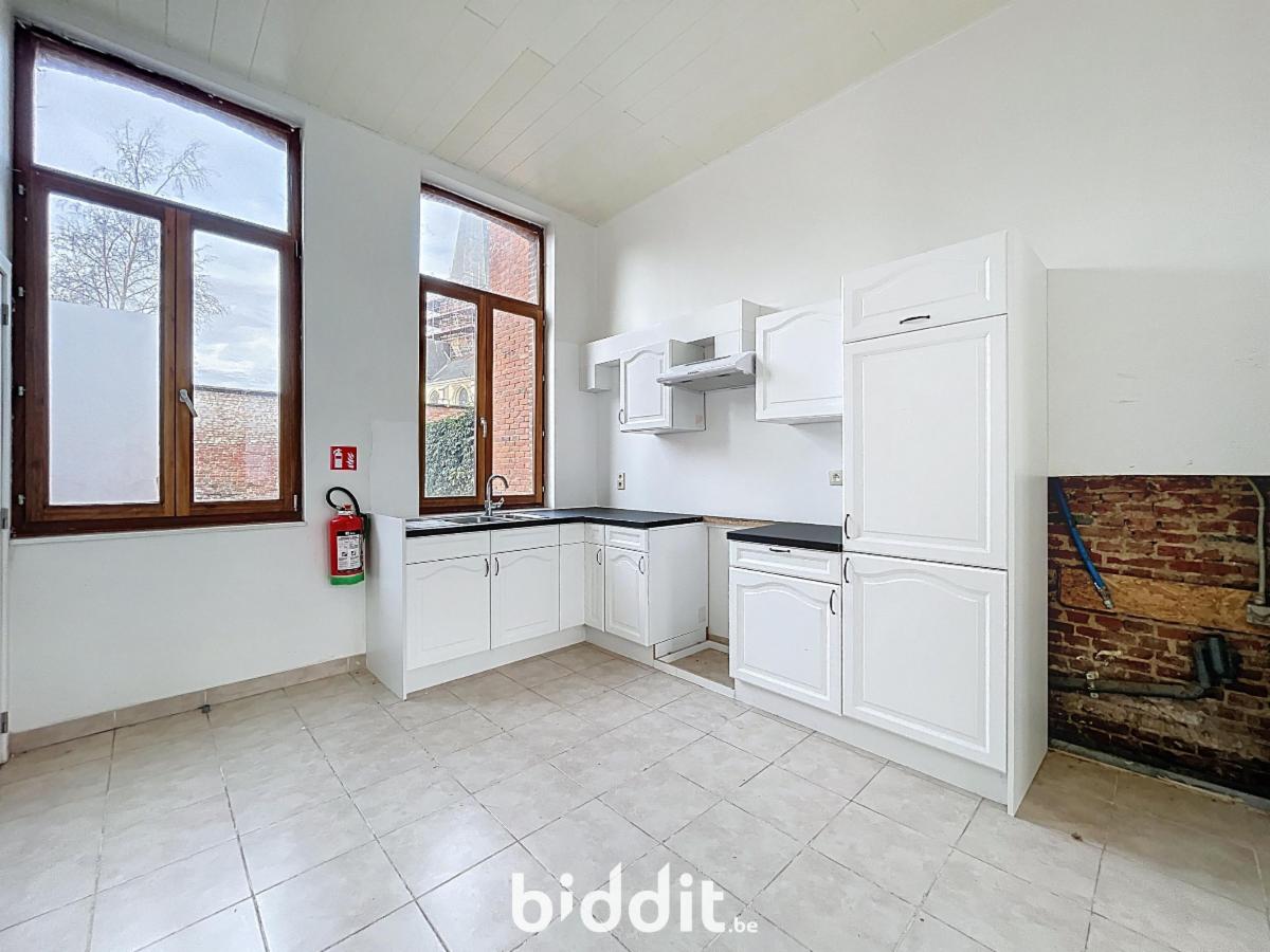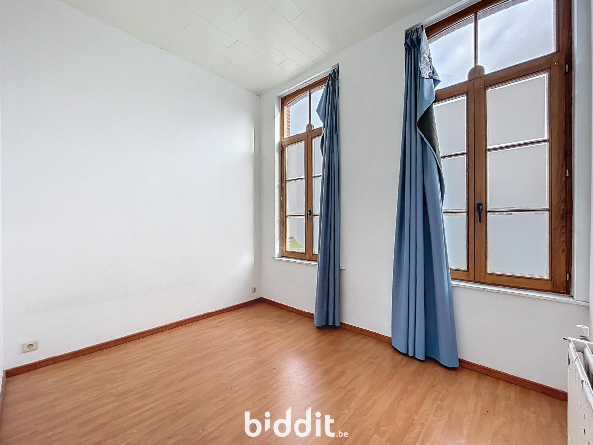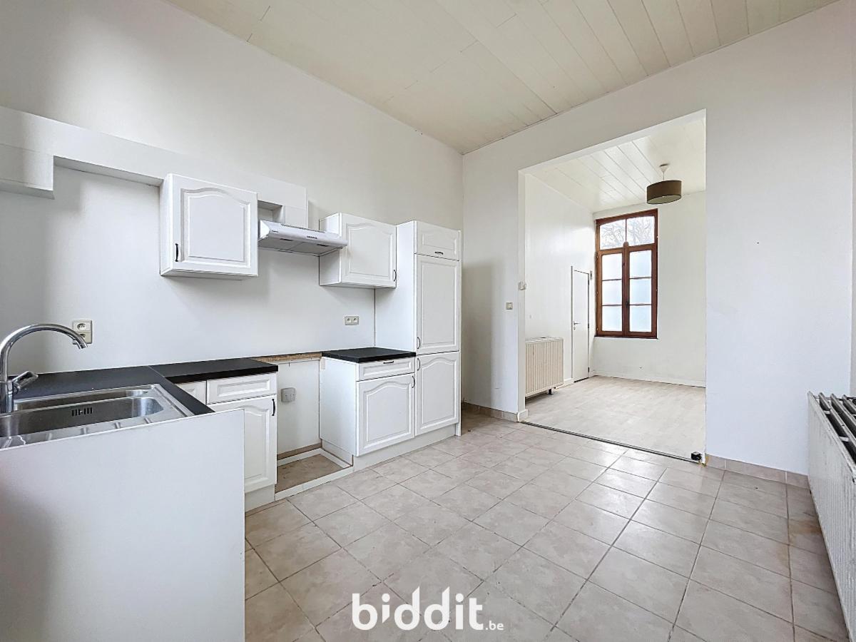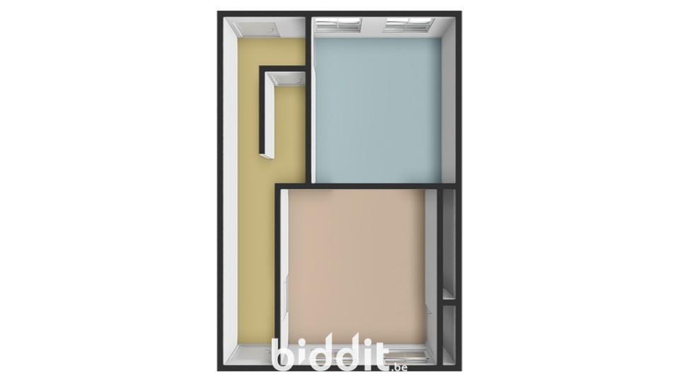 -Gelijkvloers: inkom, zitkamer met teller-ruimte, keuken met lavabo, koer;