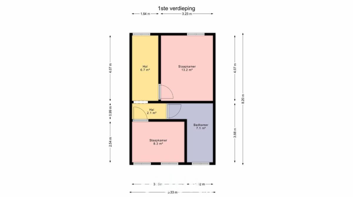 -1e verdieping: nachthal, slaapkamer 1, badkamer met wc, lavabo en douchecel en slaapkamer 2;