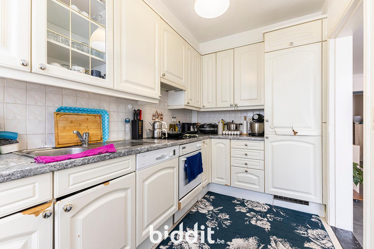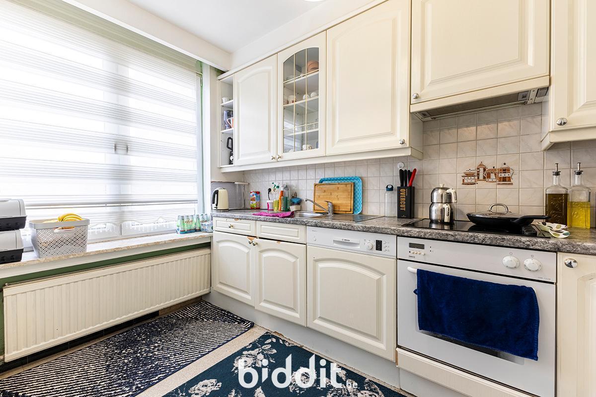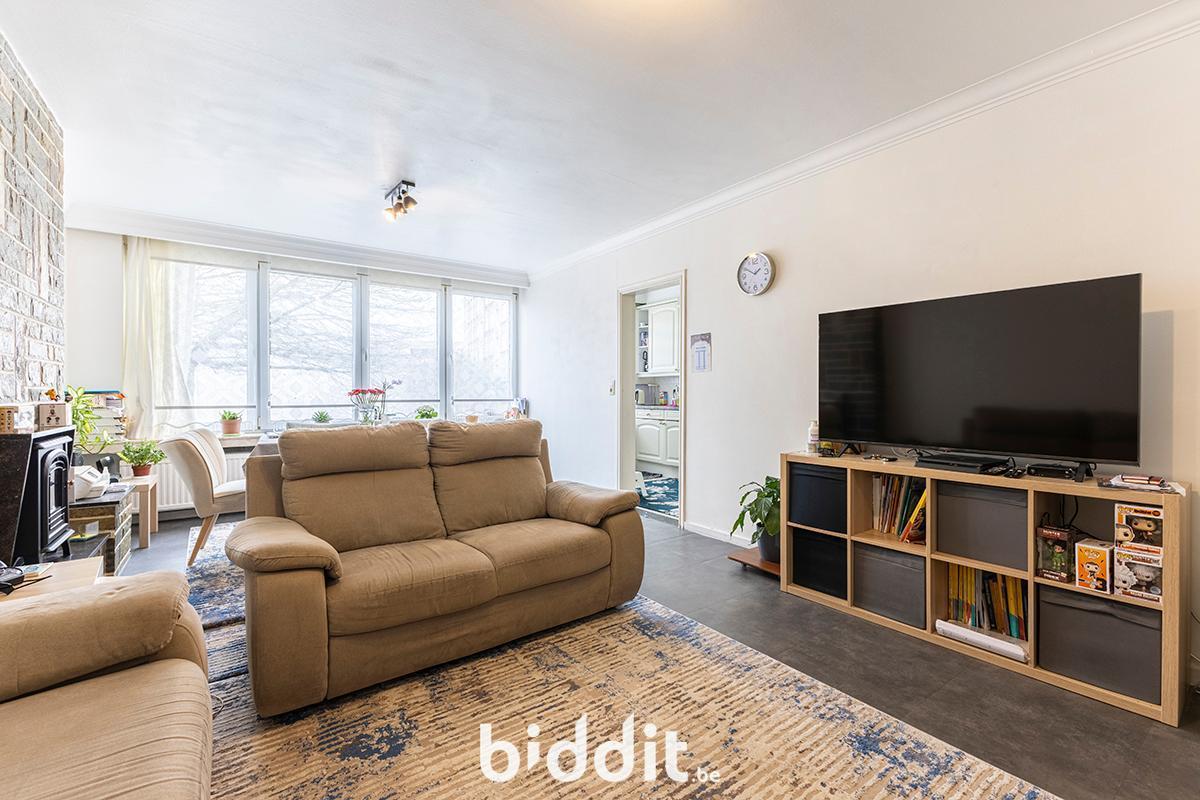 - in privatieve en uitsluitende eigendom: hall met ingemaakte kast, living, keuken, badkamer, wc, 2 slaapkamers en terras met 2 ingemaakte kasten, alsmede op het gelijkvloers de berging nummer “1”, begrijpende de berging zelf met zijn deur