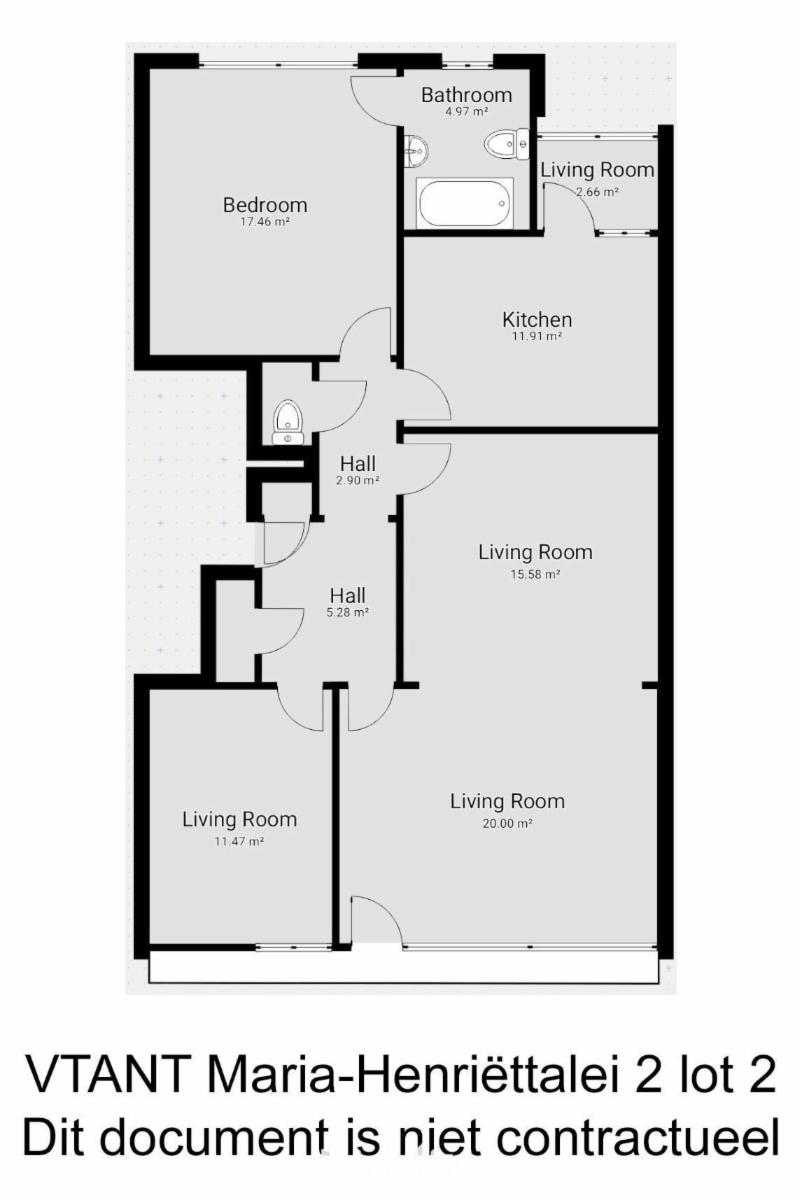 Ingedeeld als volgt: inkomhal, 2 bergingen, kamer, woon- en eetkamer, balkon (aan de straatkant), keuken, wc, slaapkamer, badkamer en onderaards een kelder.