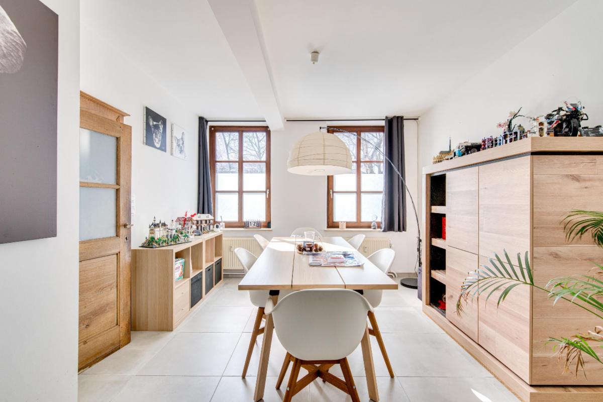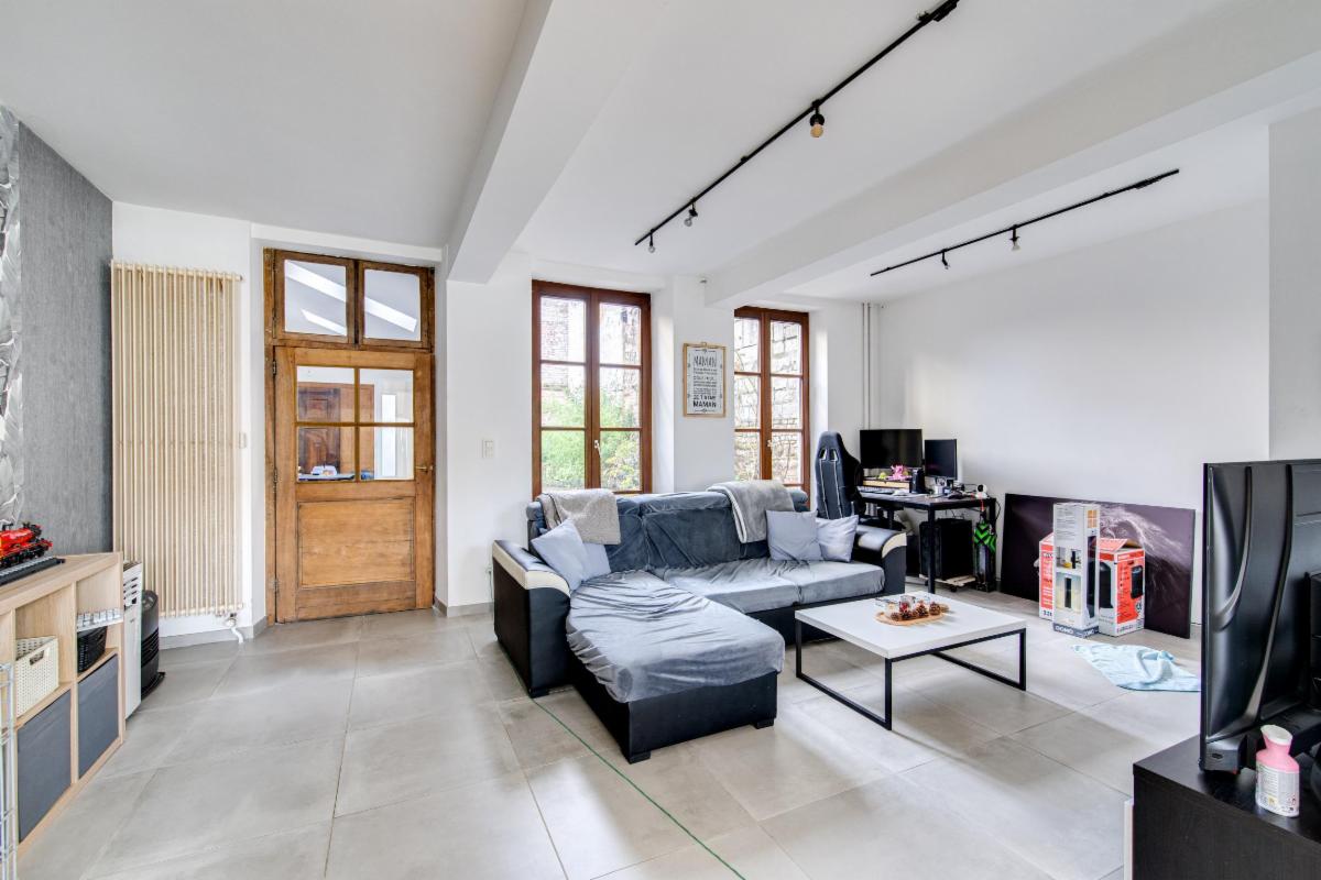 Sur les Quais de la Vesdre, un endroit très convivial de Verviers, venez découvrir cette maison de ville rénovée en 2021 alliant le charme ancien et la modernité. Idéal pour une grande famille (7 chambres à coucher et 2 salles de bain) OU, moyennant permis et autorisation, 2 duplex. Le rez-de-chaussée se compose d'un hall d'entrée + toilette, un salon/salle à manger lumineux en L, une cuisine équipée donnant accès au jardin/terrasse. Buanderie. 1er étage : deux chambres à coucher et une salle de bain. 2eme étage : 2 chambres et salle de bain (actuellement cuisine pour ancien appartement et salon). 3eme étage : 3 chambres à coucher. Sous-sol : 2 caves voutées. Techniques : nouvelle chaudière de 2021 (central gaz), châssis bois double vitrage. PEB C et installation électrique à revoir en partie. Ne manquez pas cet immeuble habitable directement, spacieux et proche de toutes commodités.