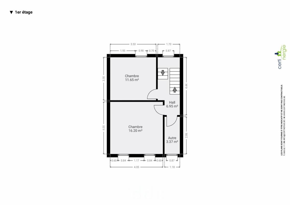 Maison 3 façades à rénover composée au rendez-de-chaussée d'un hall d'entrée, d'un séjour, d'une grande cuisine de 14 m² donnant sur la terrasse, d'une salle de bains comprenant 2 éviers et un wc. Le 1er étage se compose d'un hall de nuit desservant les 2 chambres de 12m² et 16m² et le bureau. La maison dispose d'une chaufferie, d'un garage, d'une cave et d'un grenier. Visites chaque mercredi de 14H à 16H et chaque samedi de 11H à 13H, et ce à partir du mercredi 22 avril 2026 jusqu'au mercredi 3 juin 2026, UNIQUEMENT sur RDV préalable en contactant l'étude au 010/61.22.40 (du lundi au vendredi de 9H à 12H)