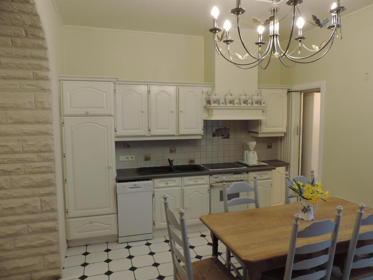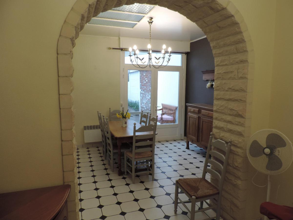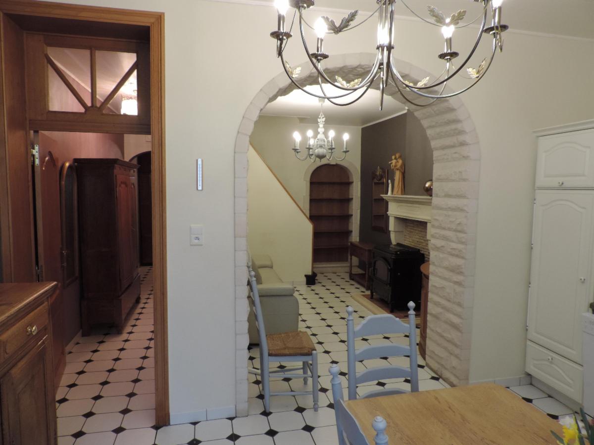 Rez-de-chaussée : salon, salle à manger, cuisine équipée, salle de bain (bain, lavabo, wc)