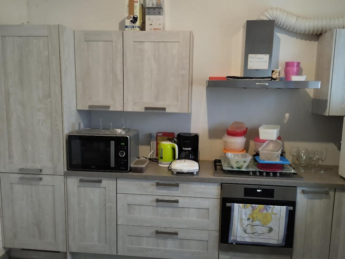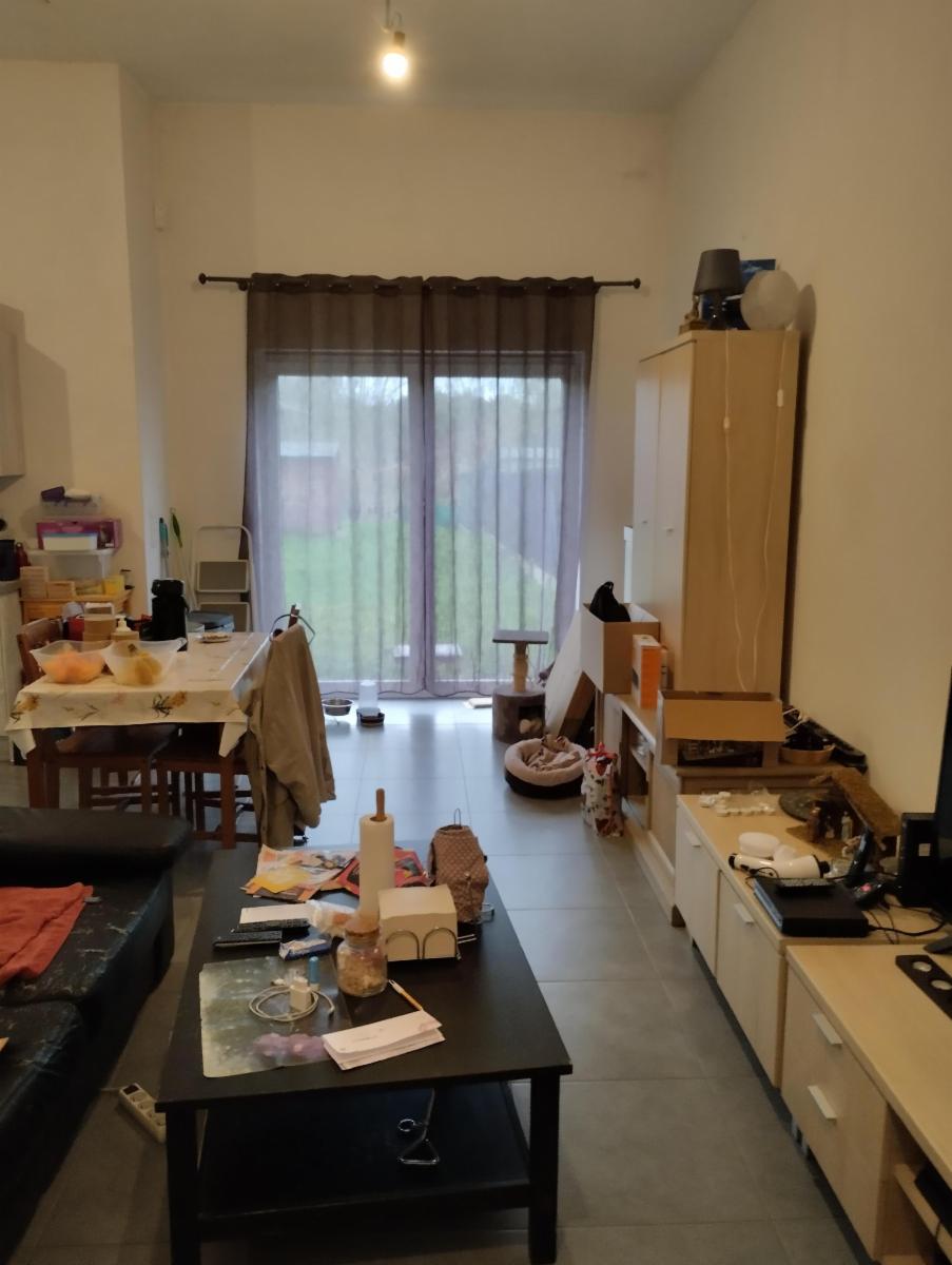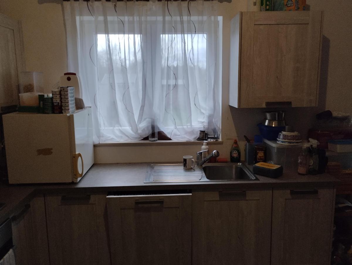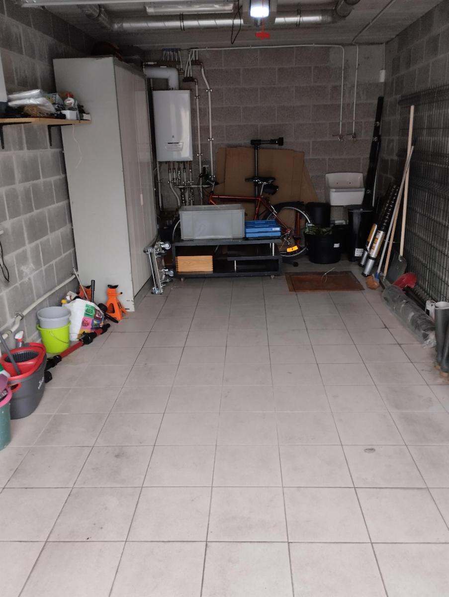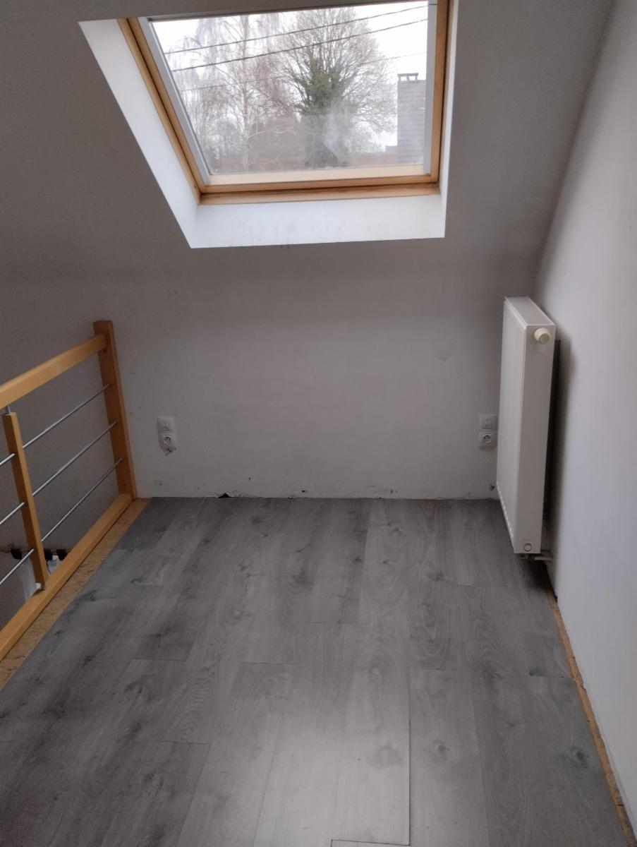 Maison d'habitation comprenant hall d'entrée, WC, escalier vers l'étage, en contre-bas living, cuisine ouverte équipée (frigo/congélateur, four, lave-vaisselle, bac évier, cuisinière au gaz avec 5 becs, hotte), baie vers le jardin. Etage : chambre 1 (16m² légèrement mansardée avec fenêtre chien assis), chambre 2 (12m² mansardée avec vélux), chambre 3 (12m² avec vélux), salle de bains (baignoire, WC, lavabo), coin buanderie (avec arrivée et évacuation d'eau), grenier accessible avec escalier escamotable. Extérieur : jardin clôturé, chalet sur dalle de béton. Chauffage central chaudière à condensation (gaz de ville) production d'eau chaude, fosse septique, citerne eau de pluie 5.000 litres (WC et robinet extérieur et garage), alarme. PEB : B, superficie totale 3 ares 27 centiares. Visite sur le samedi matin de 10 à 12 heures sur RDV uniquement donné par l'Etude au 068/28.20.80