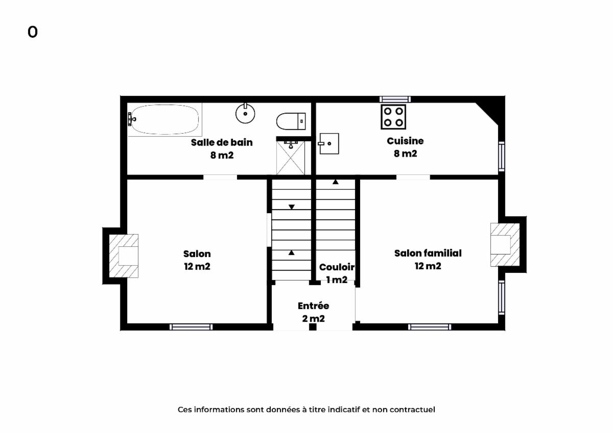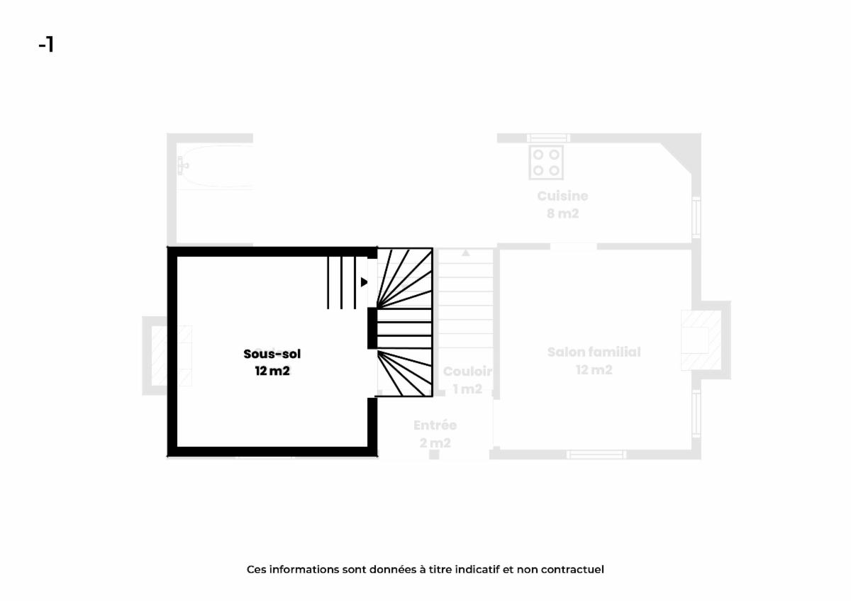 - Au rez-de-chaussée : hall, cuisine, salon, salle-à-manger, salle de bain.